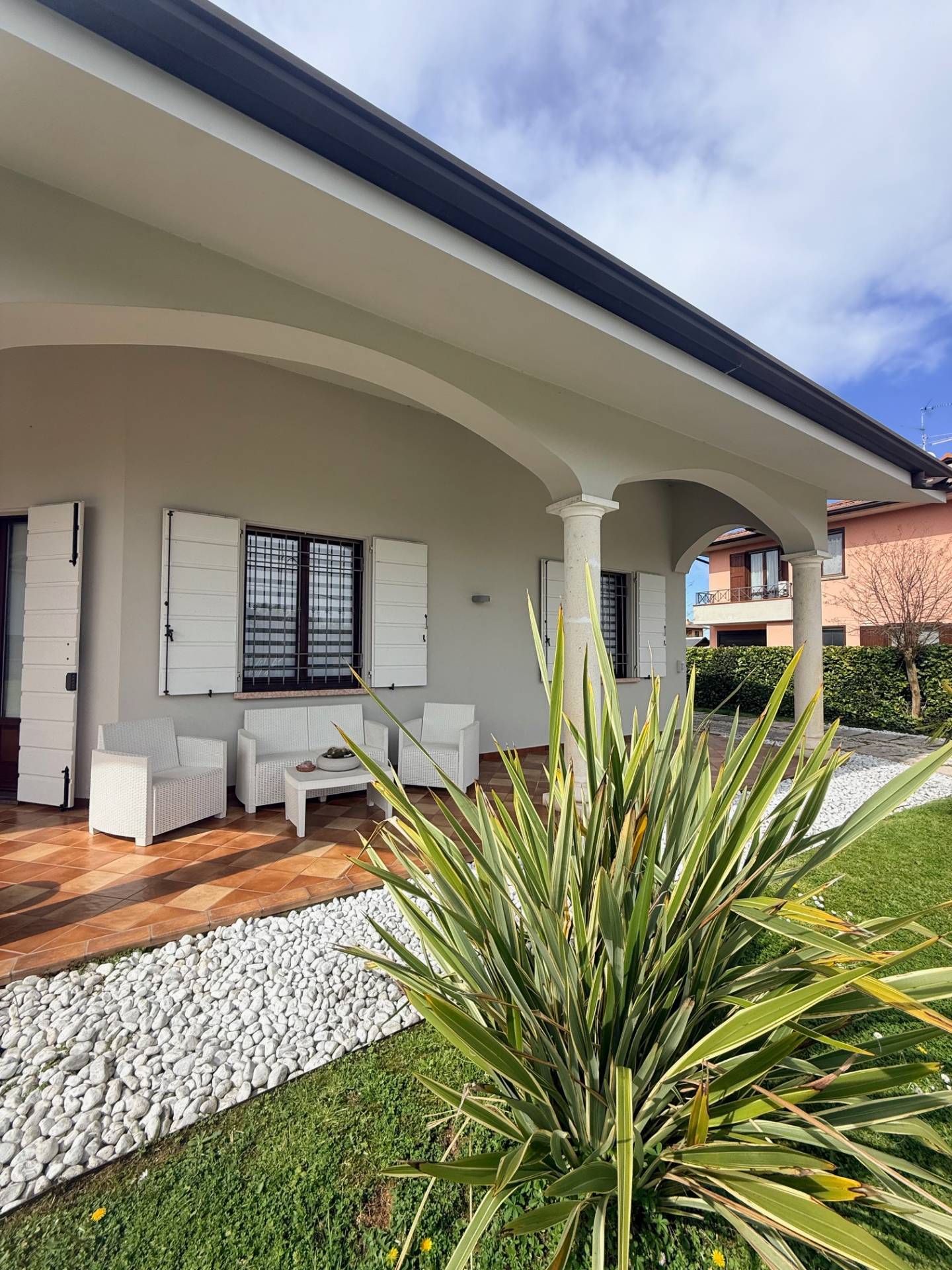 Taverna: Al piano seminterrato troviamo una generosa taverna, perfetta per conviviali cene tra amici o come spazio multifunzionale; presenza di bagno, lavanderia e cantina Esterni e Pertinenze Il vero fiore all'occhiello della propriet l'outdoor: Portico Importante: Una maestosa zona dombra che funge da naturale estensione della zona giorno, ideale per pranzare allaperto durante la bella stagione.