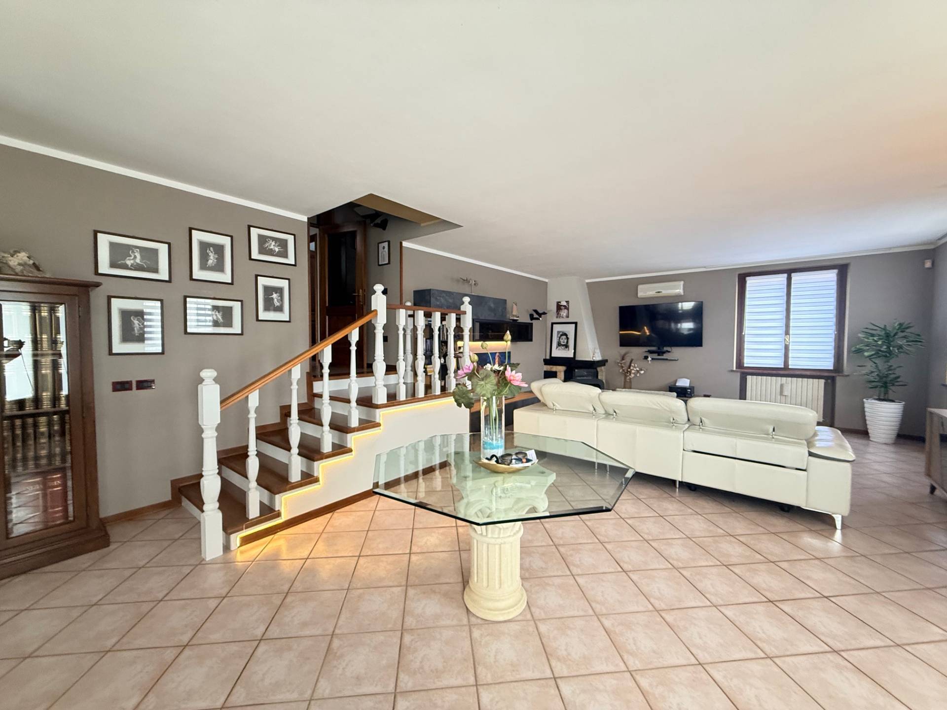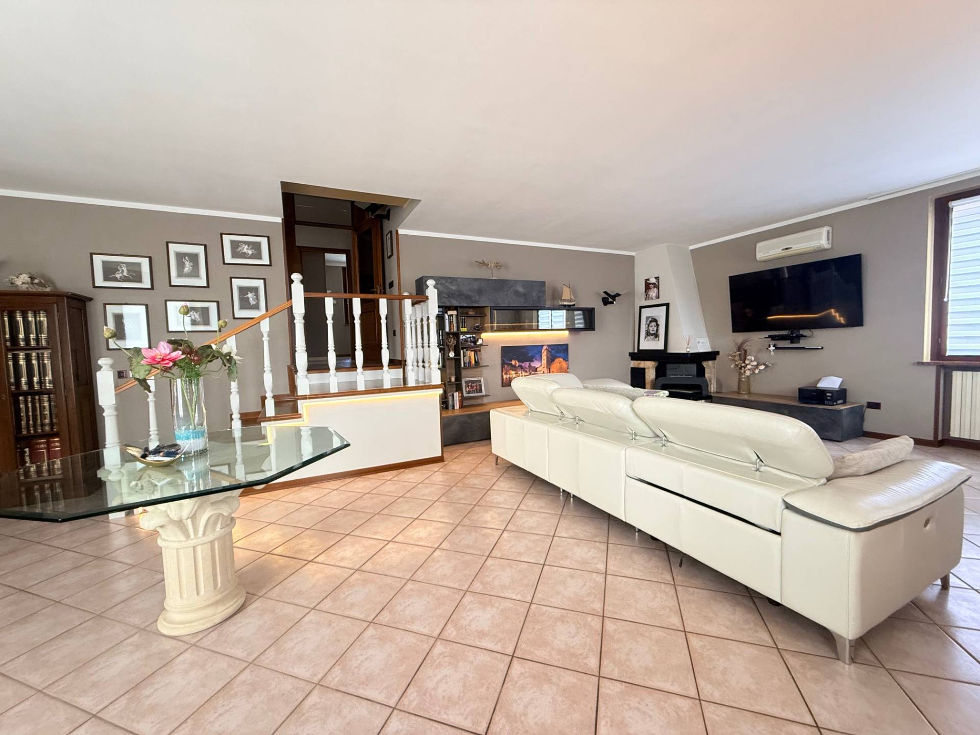Gli Spazi Abitativi La casa si sviluppa in modo dinamico su un piano principale e mezzo, completati da un sottotetto abitabile: Zona Giorno: L'ingresso apre su un living ampio e inondato di luce naturale, dove spicca un camino moderno che funge da cuore pulsante della casa. La cucina attuale e perfettamente integrata.