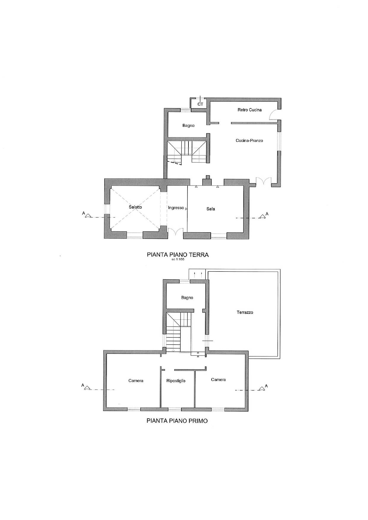 al piano superiore 3 camere da letto un bagno e un ampio terrazzo.