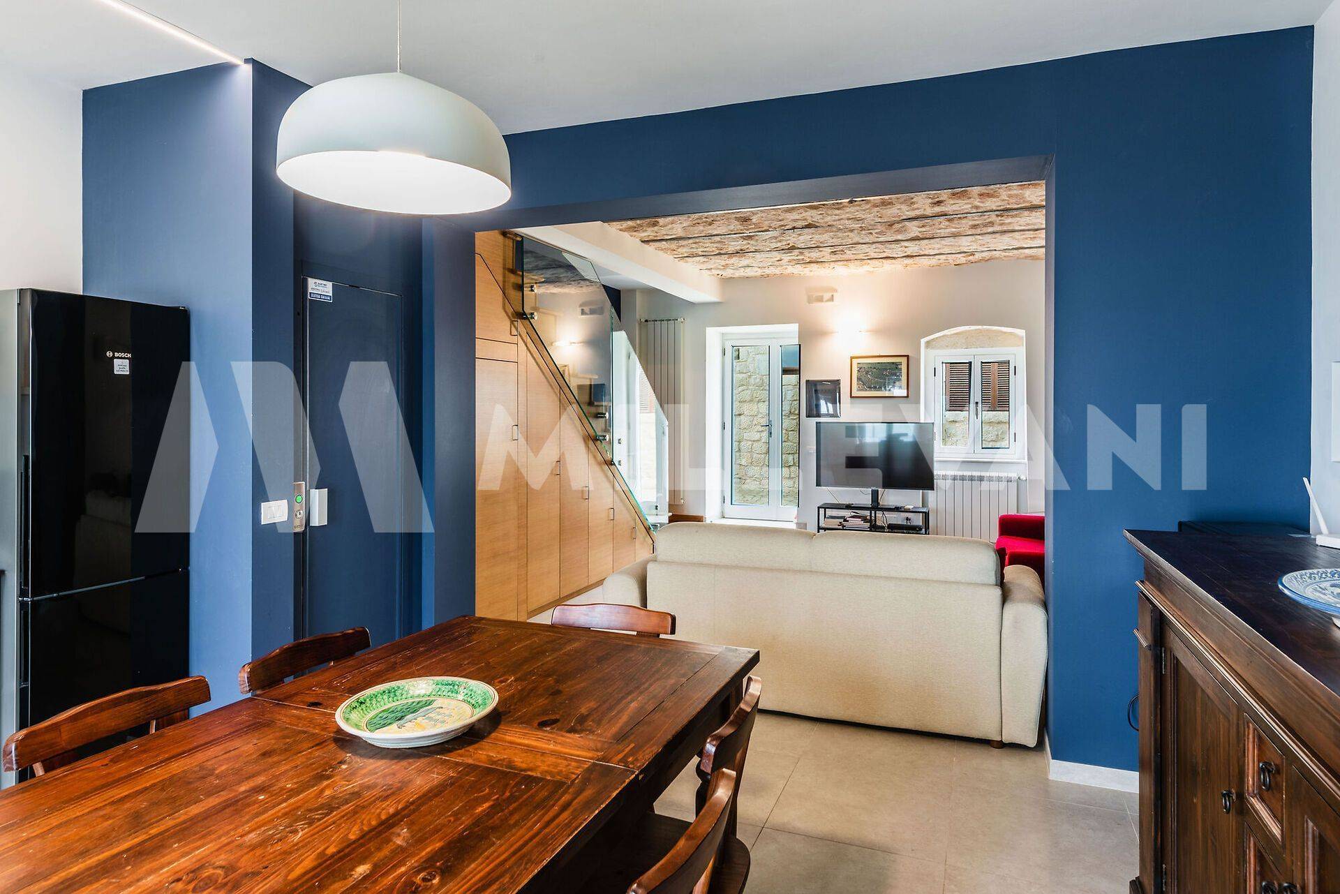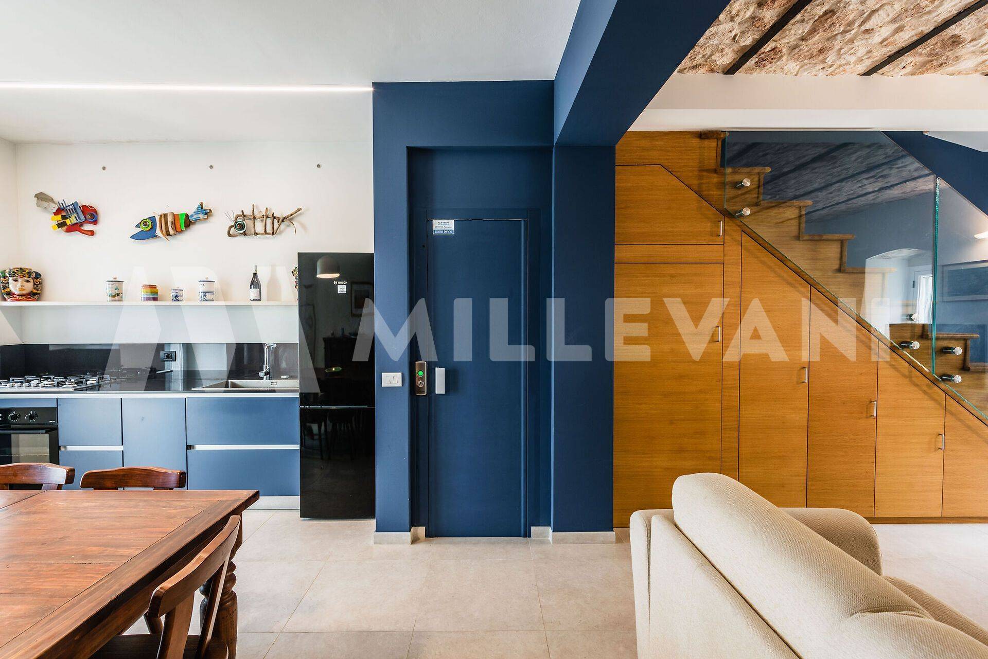 Si accede al piano primo sia attraverso una moderna scala a giorno che tramite ascensore.