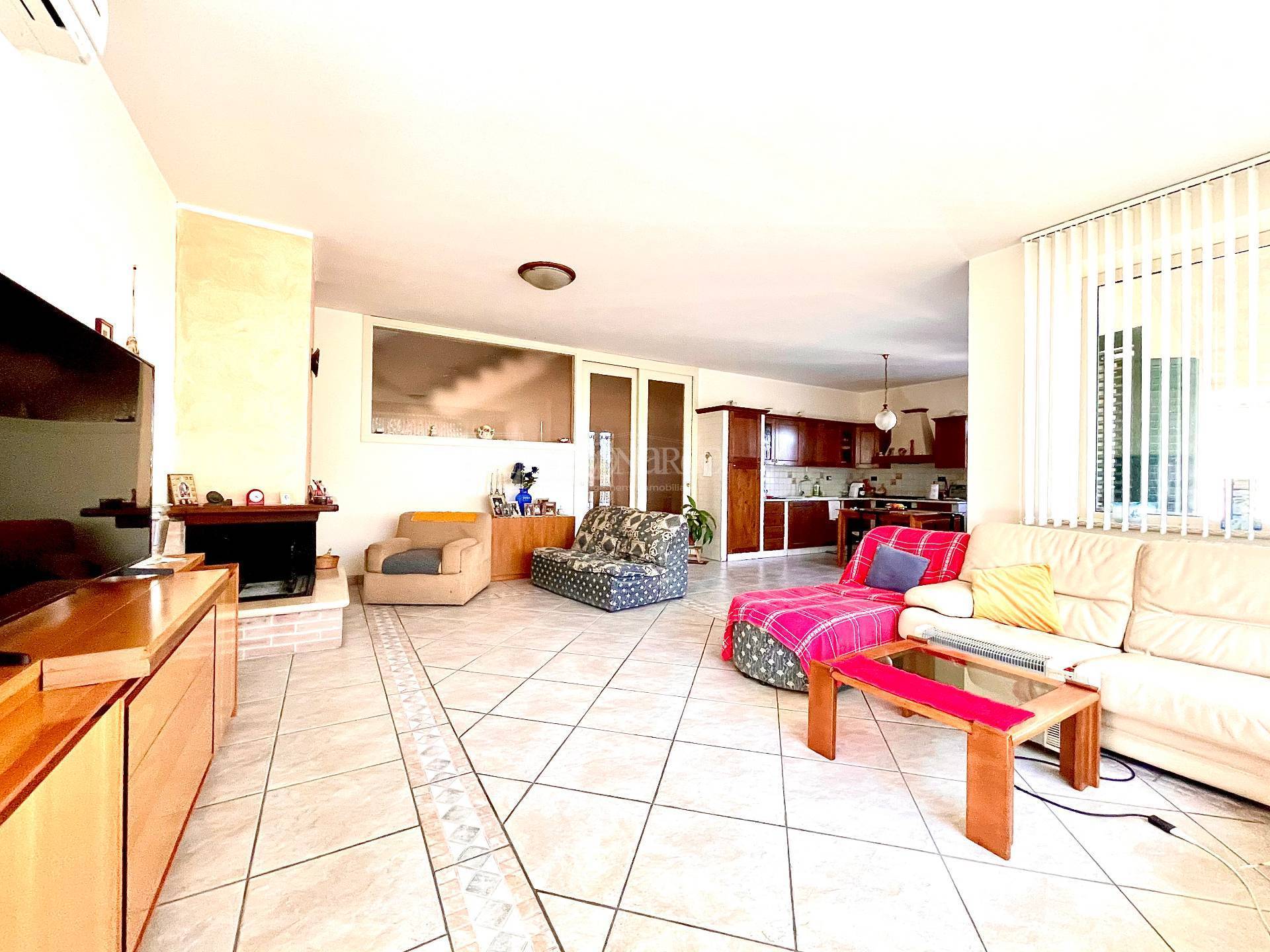 Spinetoli (AP) VENDESI - CASA SINGOLA / VILLA - in zona residenziale, soleggiata e panoramica, casa singola di circa 230 mq disposta su due livelli fuori terra e un piano seminterrato: Piano terra di 150 mq composto da ingresso, soggiorno, cucina abitabile, loggiato di 25 mq, bagno, tre camere, balcone di 6,40 mq. Tramite scala interna si accede al piano sottotetto costituito da un unico vano di 54 mq con balcone di 8 mq. Al piano sottostrada lavanderia e bagno di 27 mq, cantina di 50 mq e garage di 24 mq. La propriet circondata da una corte di 600 mq circa.