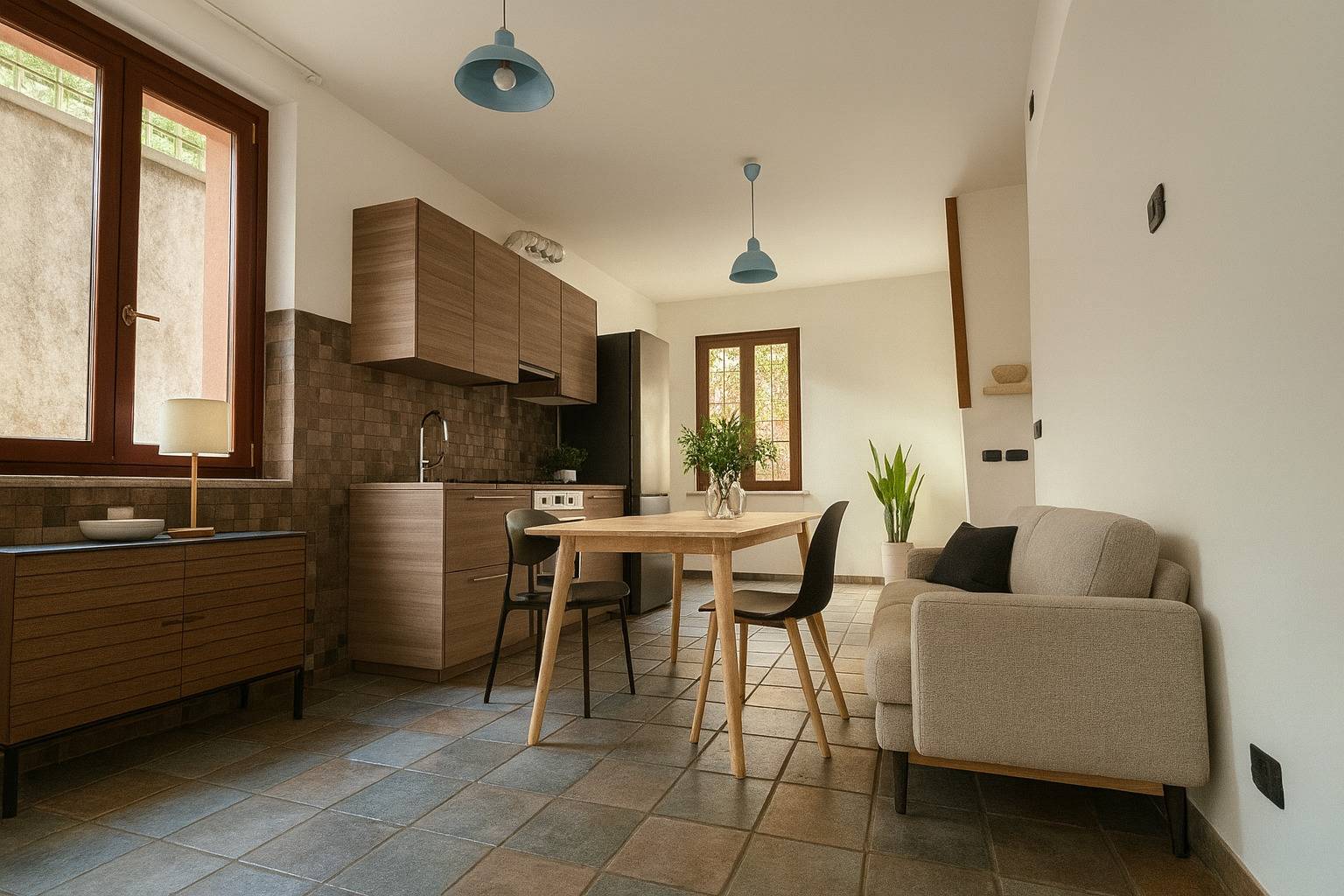 Il piano seminterrato, collegato internamente, comprende il locale caldaia (con caldaia a condensazione installata nel 2022), un locale accessorio e un locale pluriuso, ideale per il ricovero di moto o biciclette.