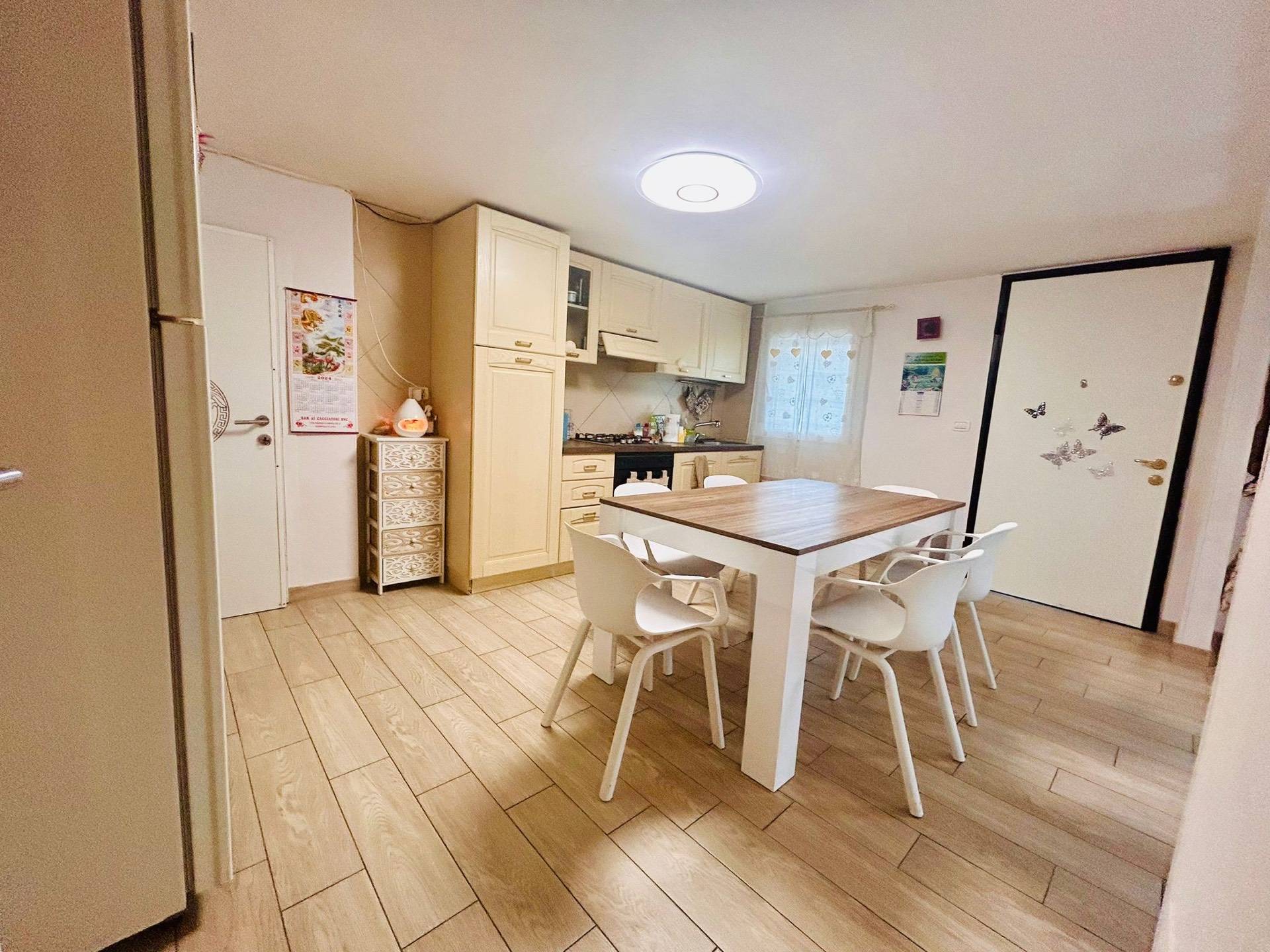 L'appartamento al primo piano composto da: ingresso, soggiorno e cottura insieme, due camere matrimoniali, una camera doppia e un bagno.
