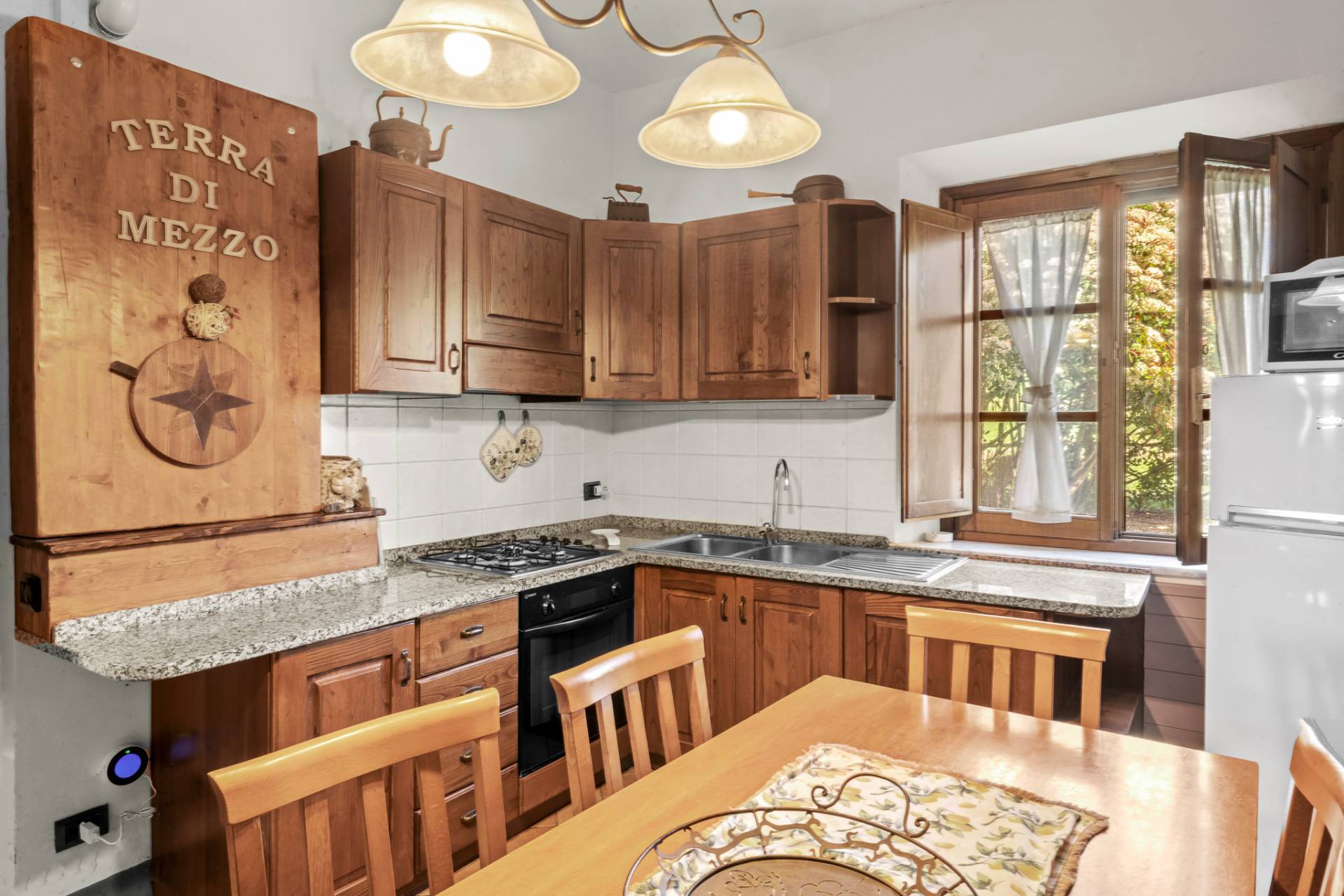 Al piano terra, la casa accoglie con una cucina abitabile affacciata sul giardino, un salone reso intimo da un caminetto in pietra che diffonde calore e charme, un bagno di cortesia e un portico panoramico, luogo privilegiato per godere della luce, del silenzio e dei ritmi lenti della campagna.