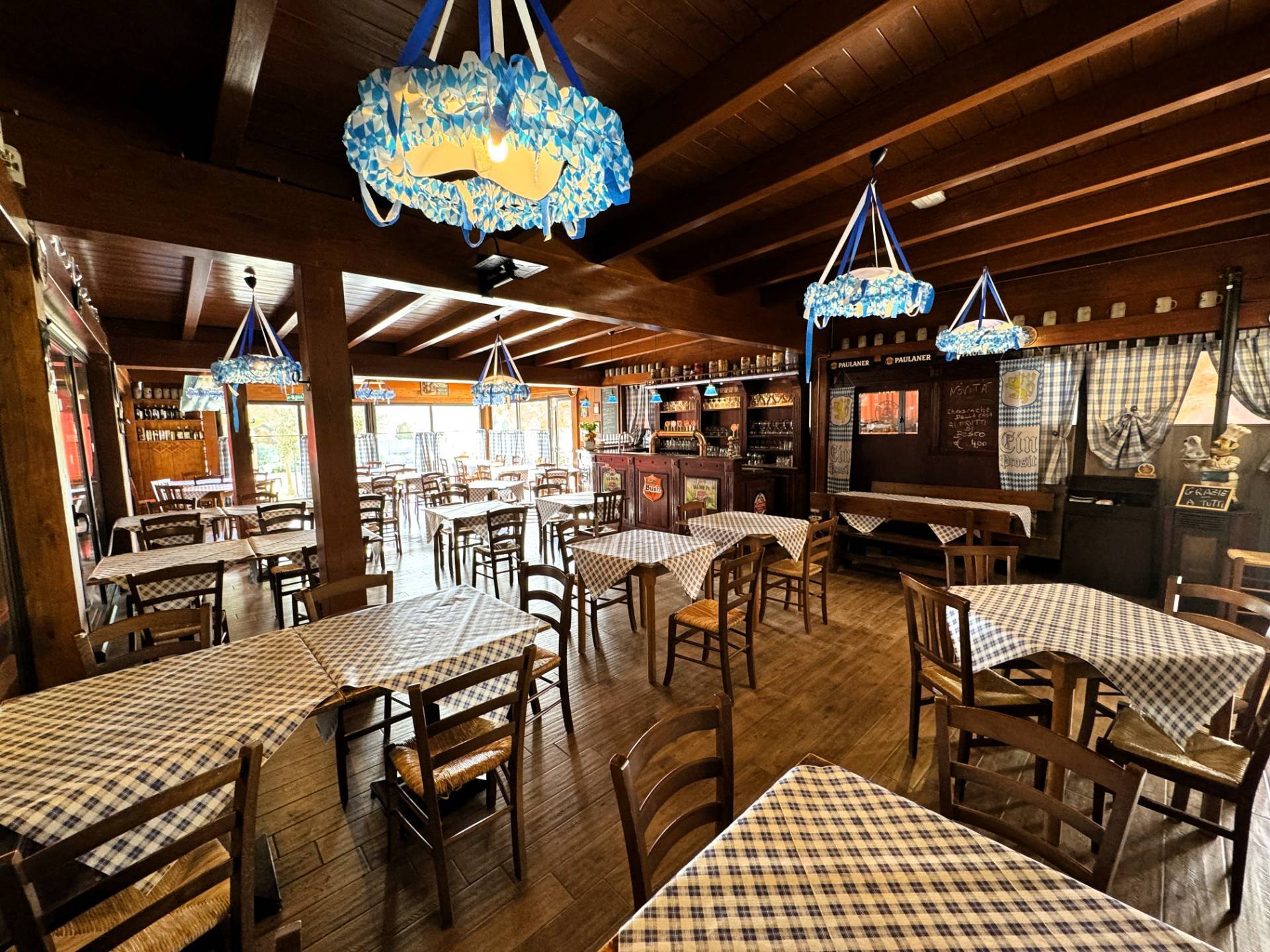 L'immobile si compone al piano terra da ingresso con accesso diretto alla bellissima sala ristorante con circa 80 posti a sedere, all'interno di una veranda con struttura in legno e ampie vetrate a servizio, proseguendo troviamo l'area bar con la hall e saletta interna privata, il tutto servito da bagni uomo/donna e infine locali tecnici adibiti a pizzeria, cucina e magazzini vari, anch'essi completi di bagno per il personale.