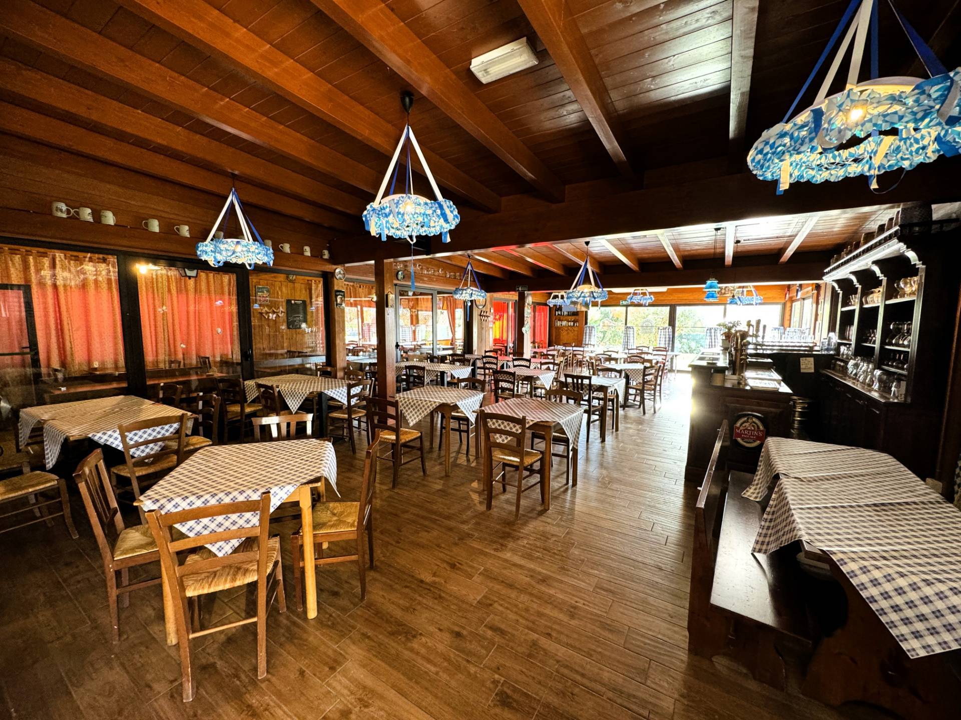 L'immobile si compone al piano terra da ingresso con accesso diretto alla bellissima sala ristorante con circa 80 posti a sedere, all'interno di una veranda con struttura in legno e ampie vetrate a servizio, proseguendo troviamo l'area bar con la hall e saletta interna privata, il tutto servito da bagni uomo/donna e infine locali tecnici adibiti a pizzeria, cucina e magazzini vari, anch'essi completi di bagno per il personale.