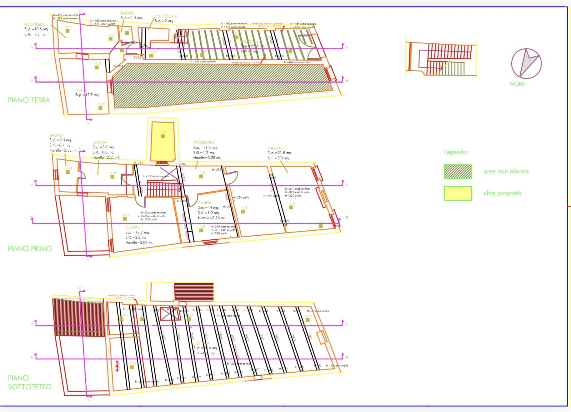 La propriet si sviluppa su due piani oltre a sottotetto, offrendo interessanti possibilit di redistribuzione degli spazi interni.