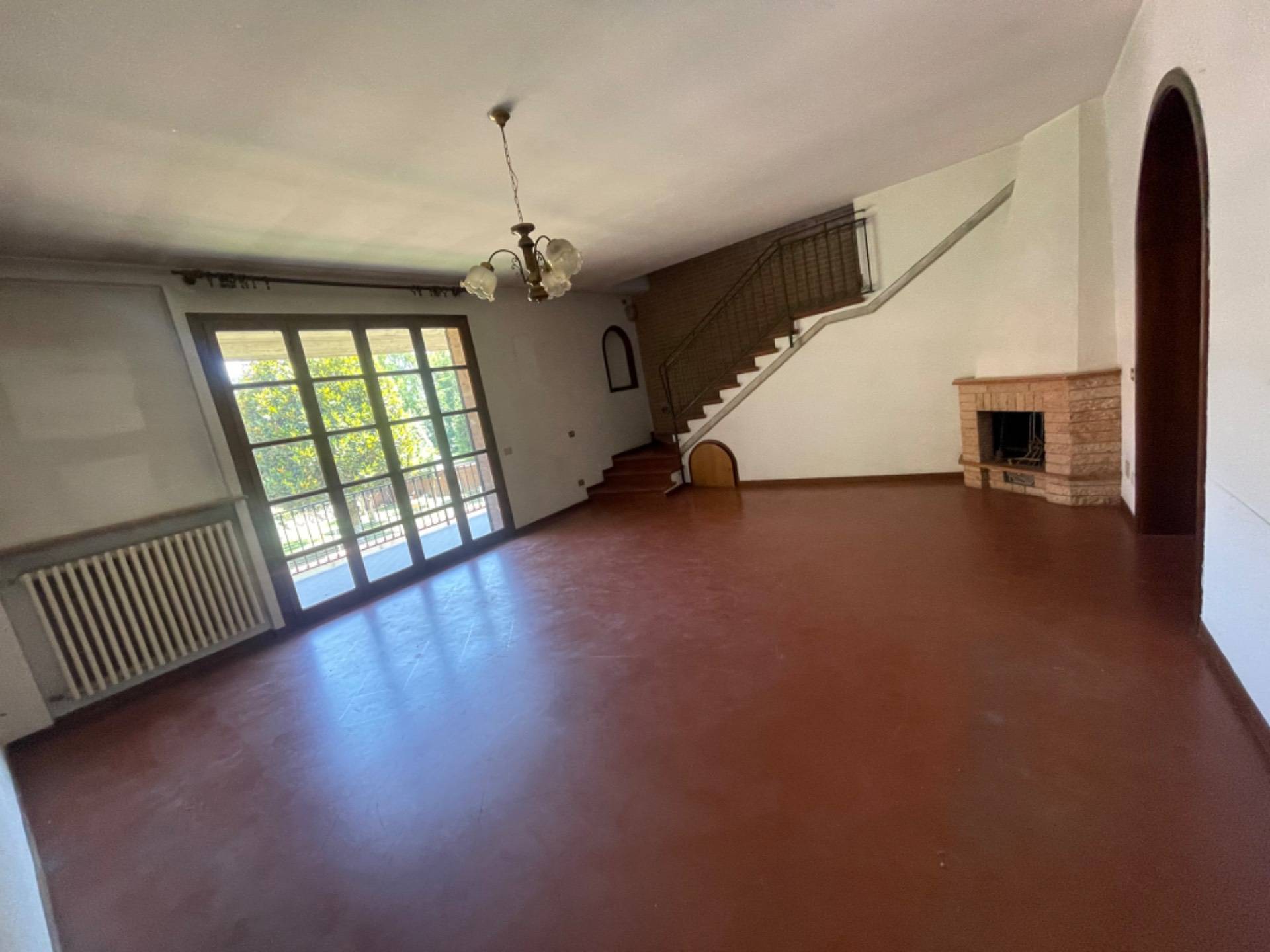 Al piano rialzato si sviluppa la zona giorno, composta da grande salone con camino e terrazzo ideale per godersi momenti di relax e di convivialit all'aperto, cucina con zona pranzo dotata di ampio balcone, un bagno finestrato e un ripostiglio.