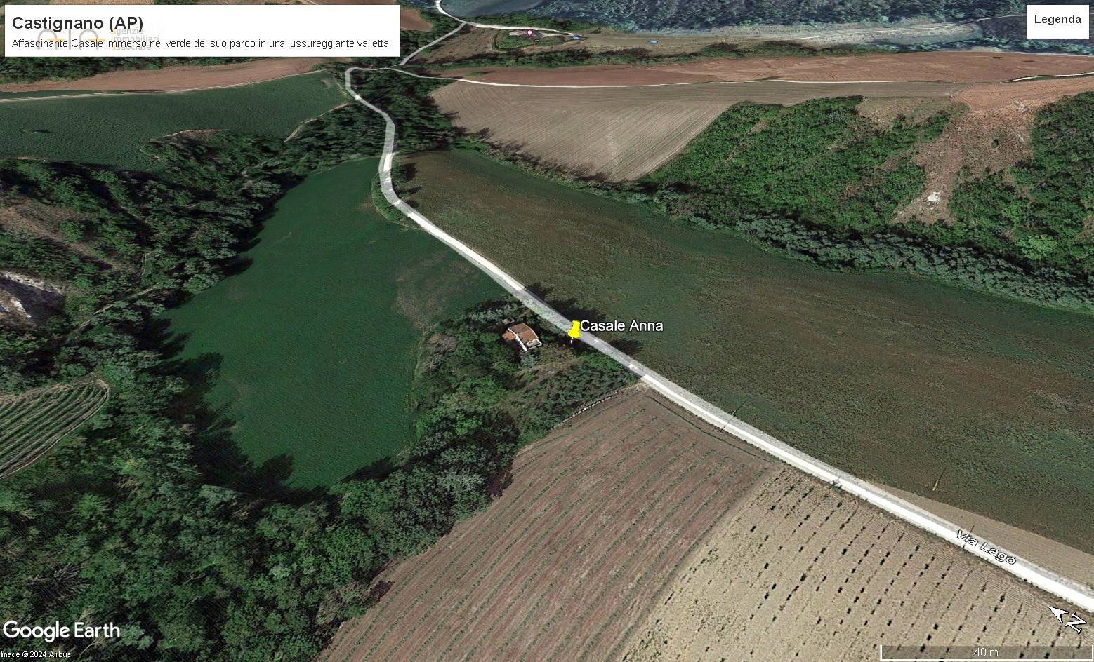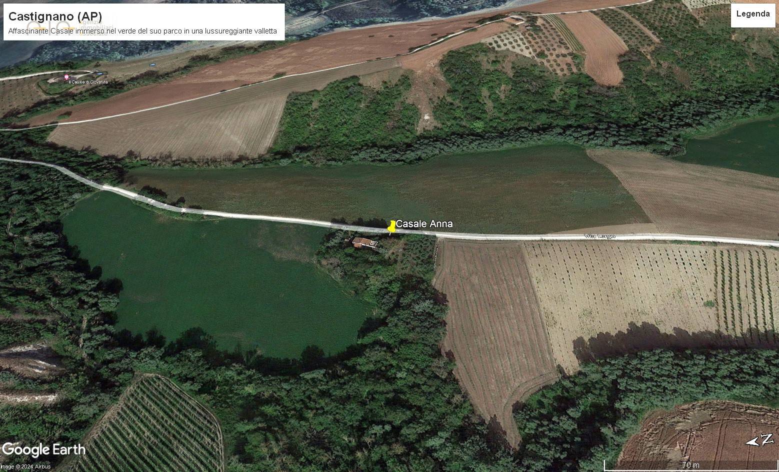 Il casale, adagiato in una bellissima valletta ed incorniciato da una ricchissima vegetazione con piante ad alto fusto, alberi da frutta e ulivi, gode di una meravigliosa vista sulla campagna e sulle colline circostanti.
