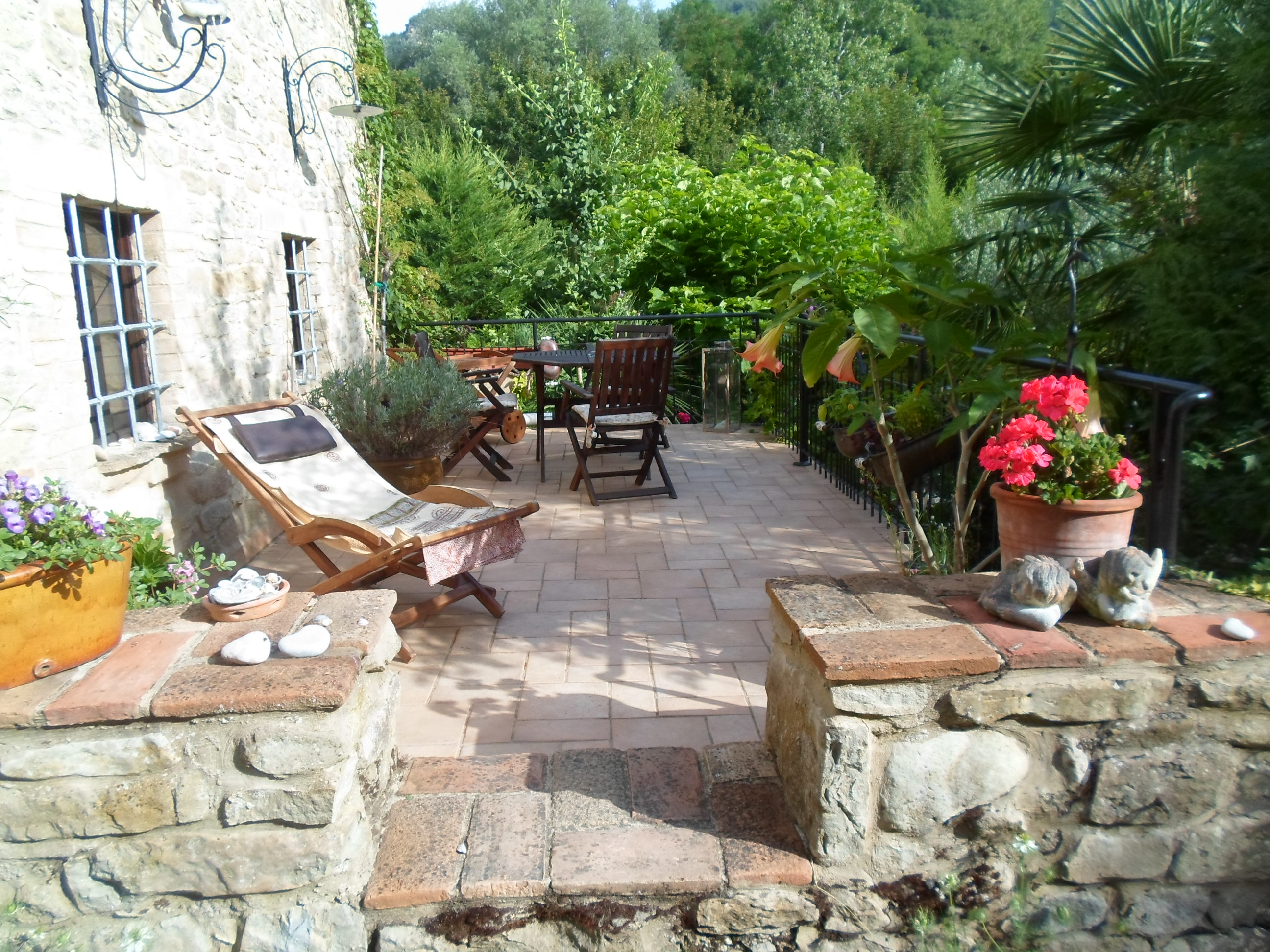 Un ampissimo giardino ci accoglie con variet di piante, di fiori, gazebo, panche, pietre ornamentali, un rarissimo forno ed una speciale piscina: tanta comodit e riservatezza.