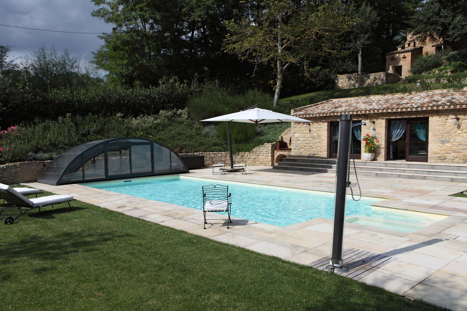 Finiture di altissimo pregio come pavimentazioni in legno di quercia e rovere lavorati artigianalmente, bagni Devon&Devon e docce Jacuzzi, infissi in legno di castagno provvisti di vetri termici e sportelloni sempre in castagno, impianto di riscaldamento a pavimento, impianto elettrico domotico, impianto di irrigazione automatico alimentato da pozzo privato, recinzioni e cancellate in ferro battuto.