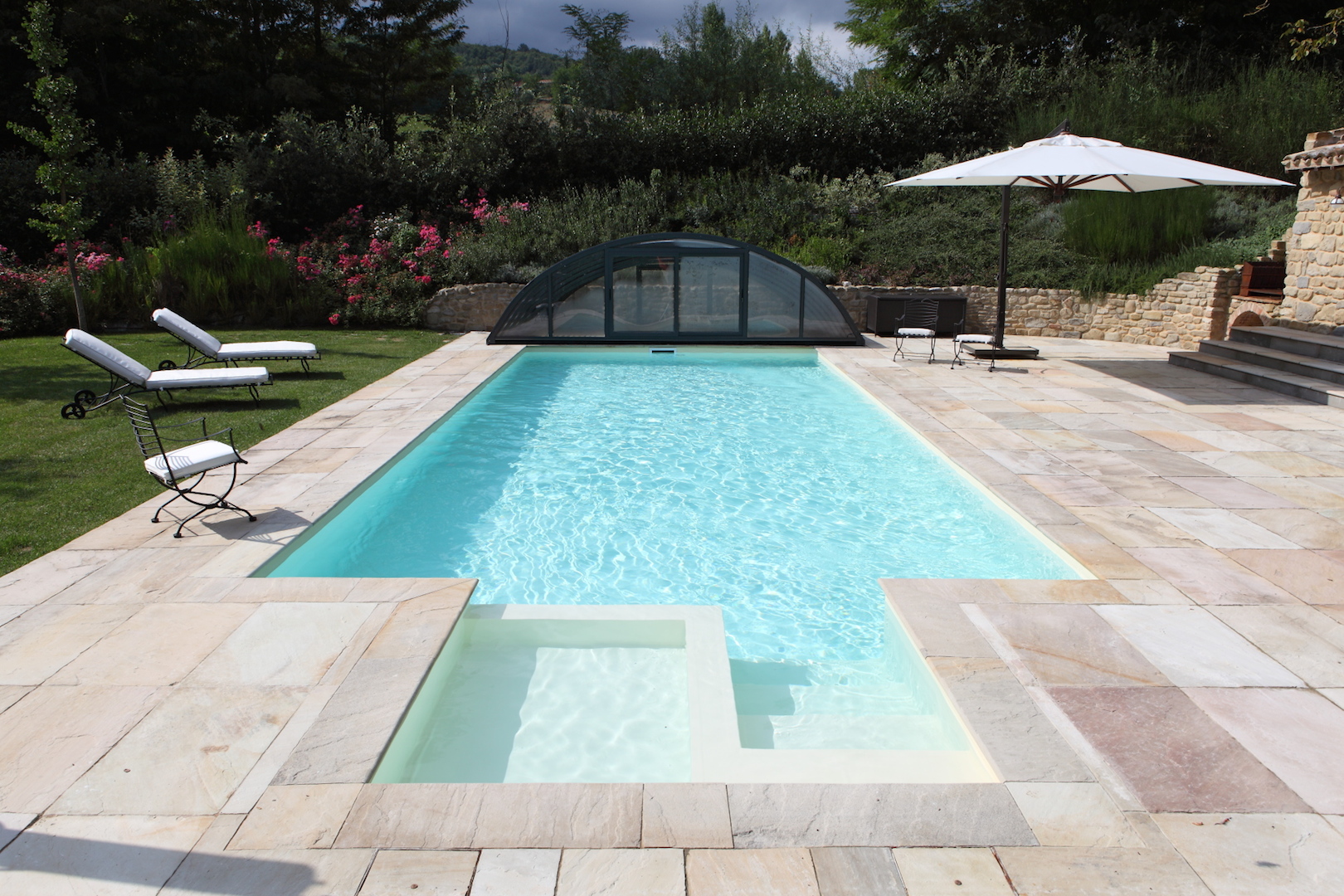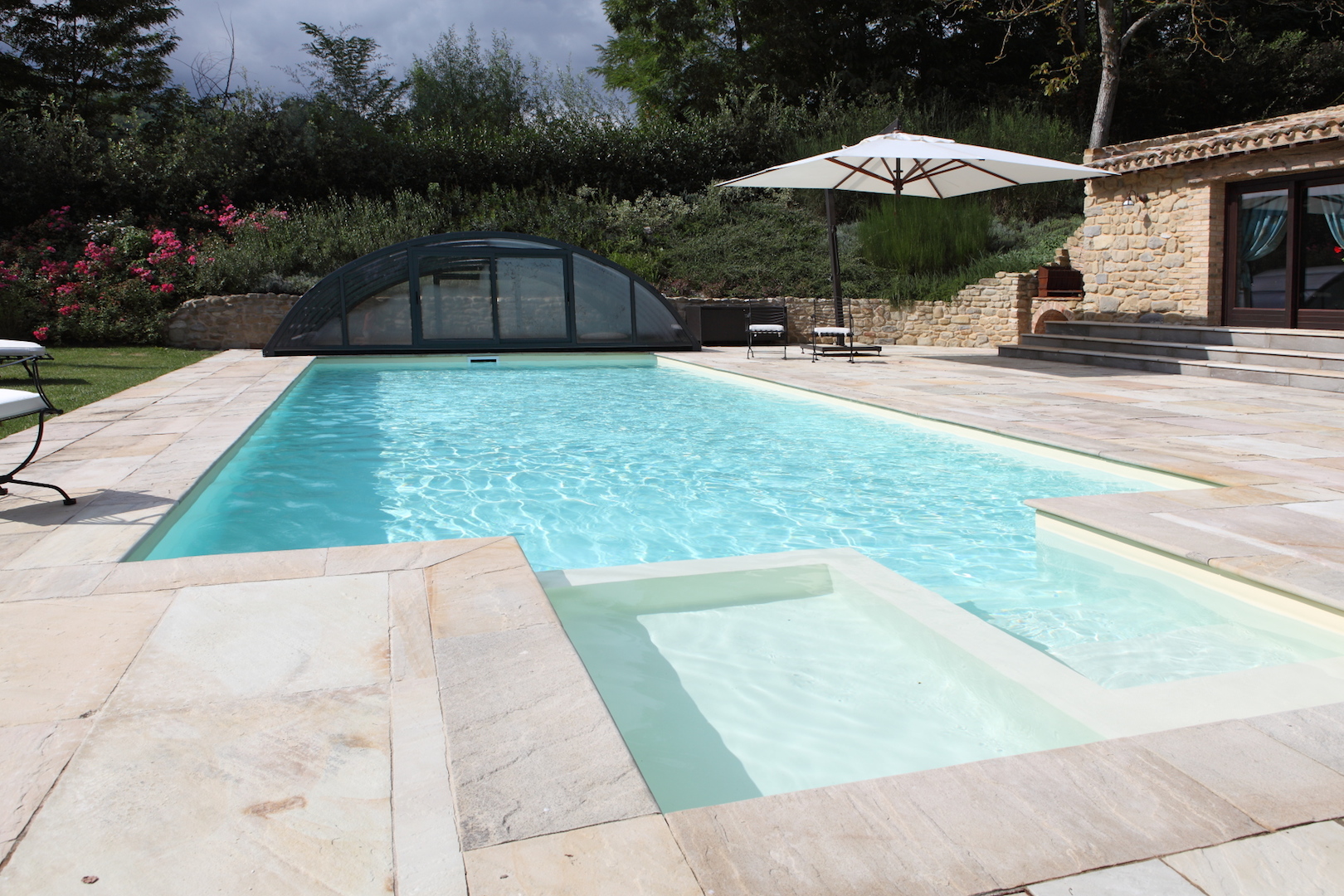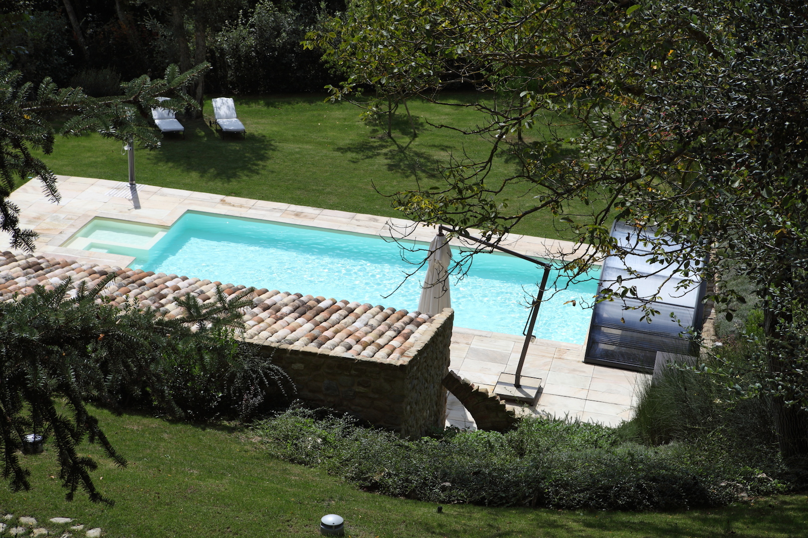 La propriet circondata da un ampio parco con alberi secolari su cui sono presenti una piscina (dimensioni mt. 13 x 5) provvista di vasca per bambini e copertura telescopica e una adiacente dependance di 45 mq. circa attrezzata con camera da letto, angolo cottura e bagno.
