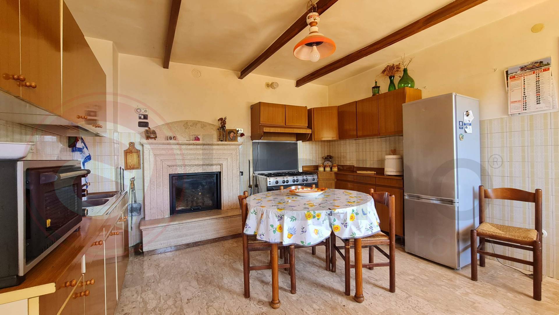 La propriet completamente recintata, ad accoglierci dopo l'ingresso c' un ampio terrazzo di oltre 300 metri quadri tutto pavimentato ed un garage di oltre 60 mq con annessa cantina di 30 mq. Il casale conserva la struttura in pietra originale, oggi intonacata, al piano terra si compone di un ingresso, salone, cucina abitabile con termo camino fatto a mano, tinello e dispensa, mentre al primo piano c' la zona notte, fatta di due camere matrimoniali, un servizio e balcone perimetrale.
