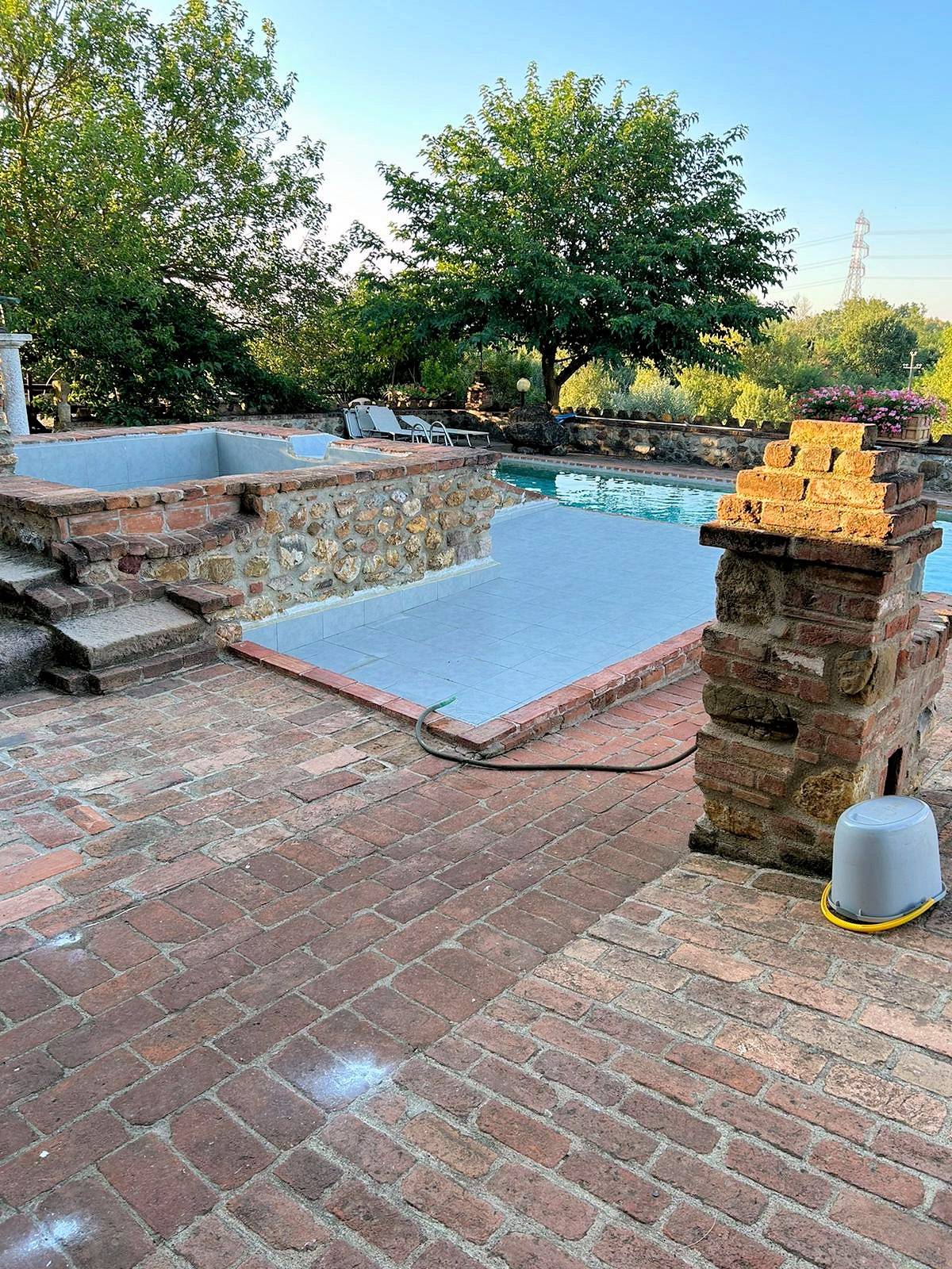Allesterno troviamo una grande piscina interrata e due rialzate pi piccole immerse in un curatissimo giardino.