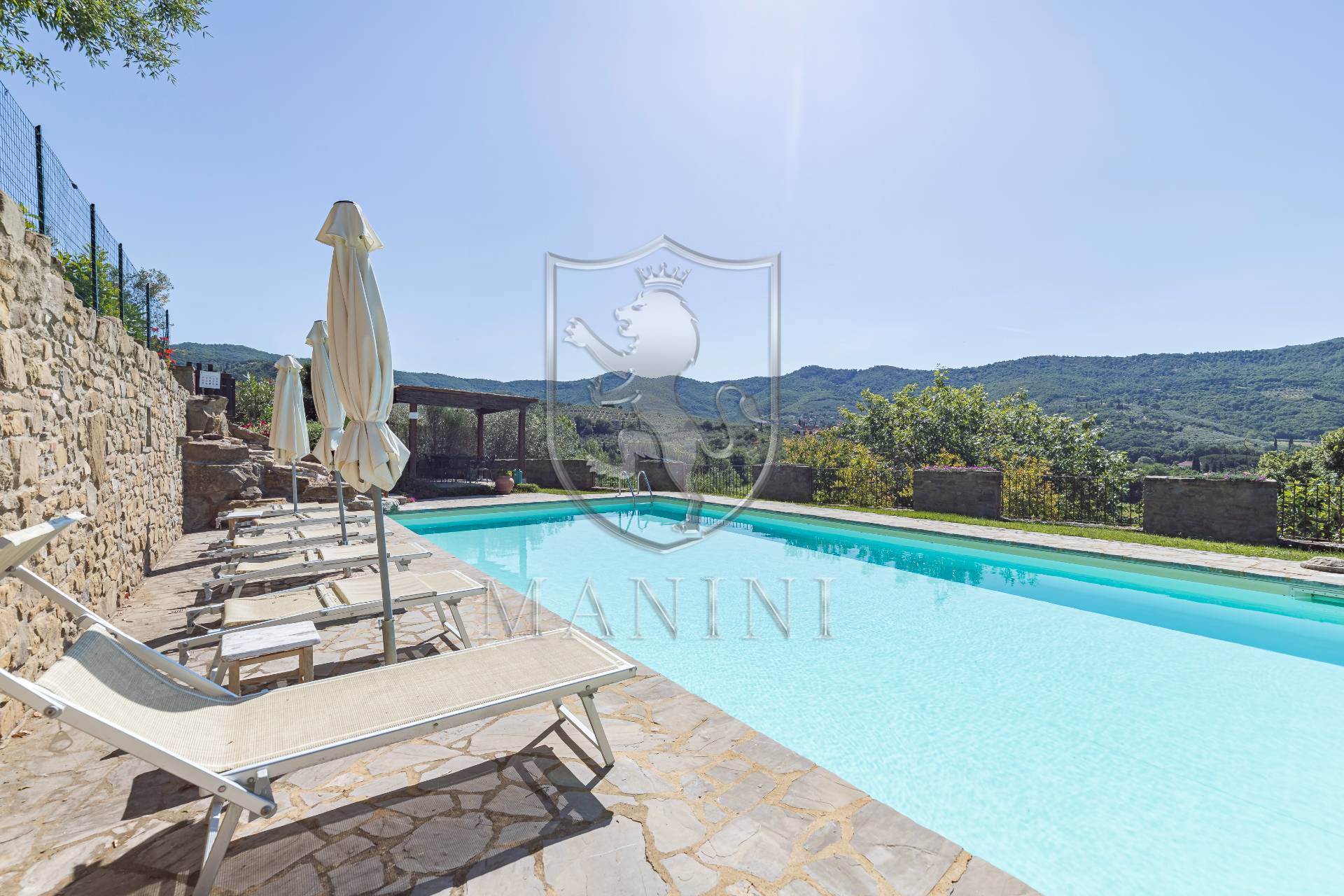 Il cuore dellarea esterna la splendida piscina panoramica (12x6 m), situata in posizione dominante, con solarium attrezzato, gazebo ombreggiato, lettini e area lounge: un vero e proprio angolo di paradiso dove rilassarsi ammirando il paesaggio.
