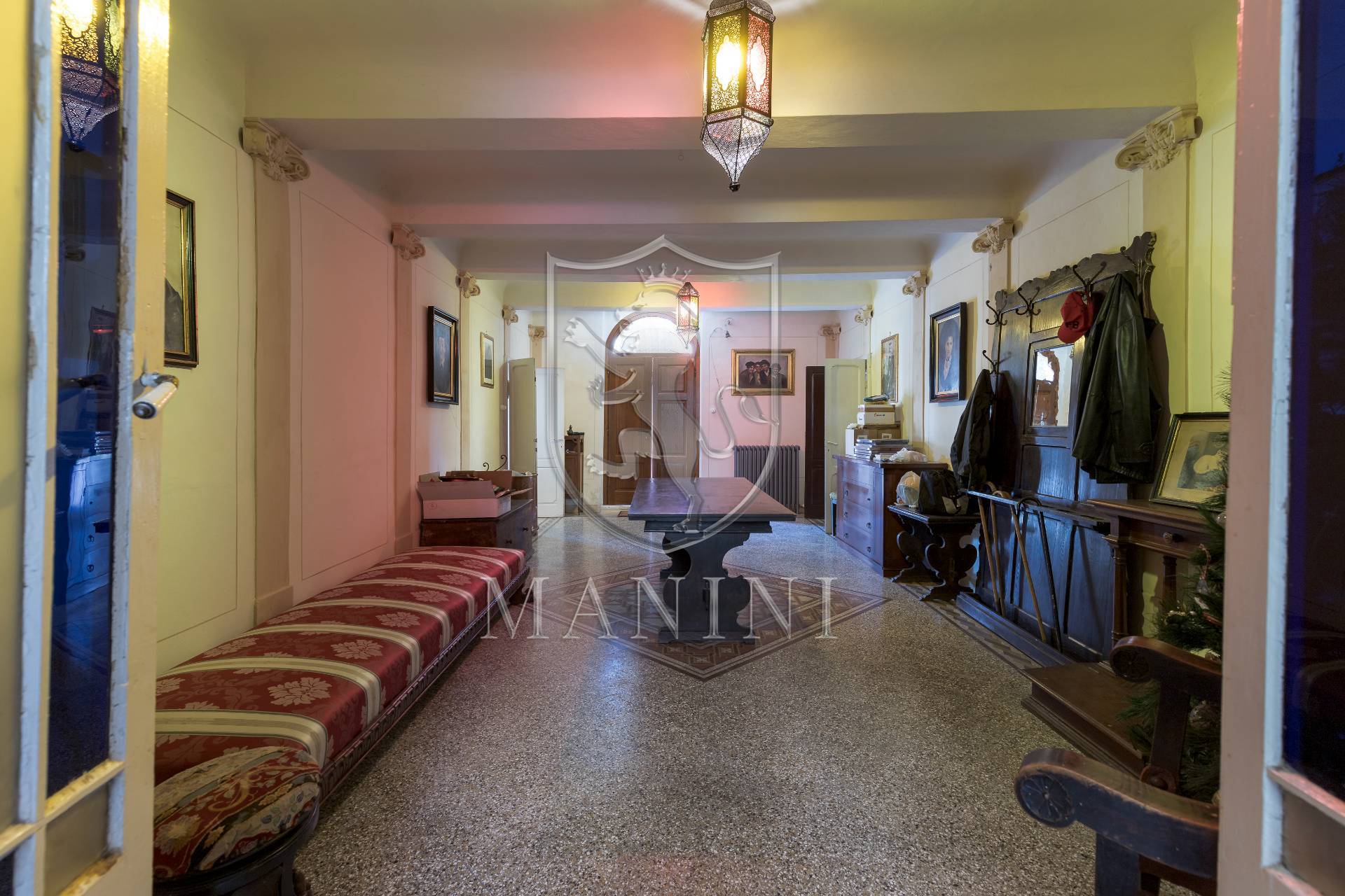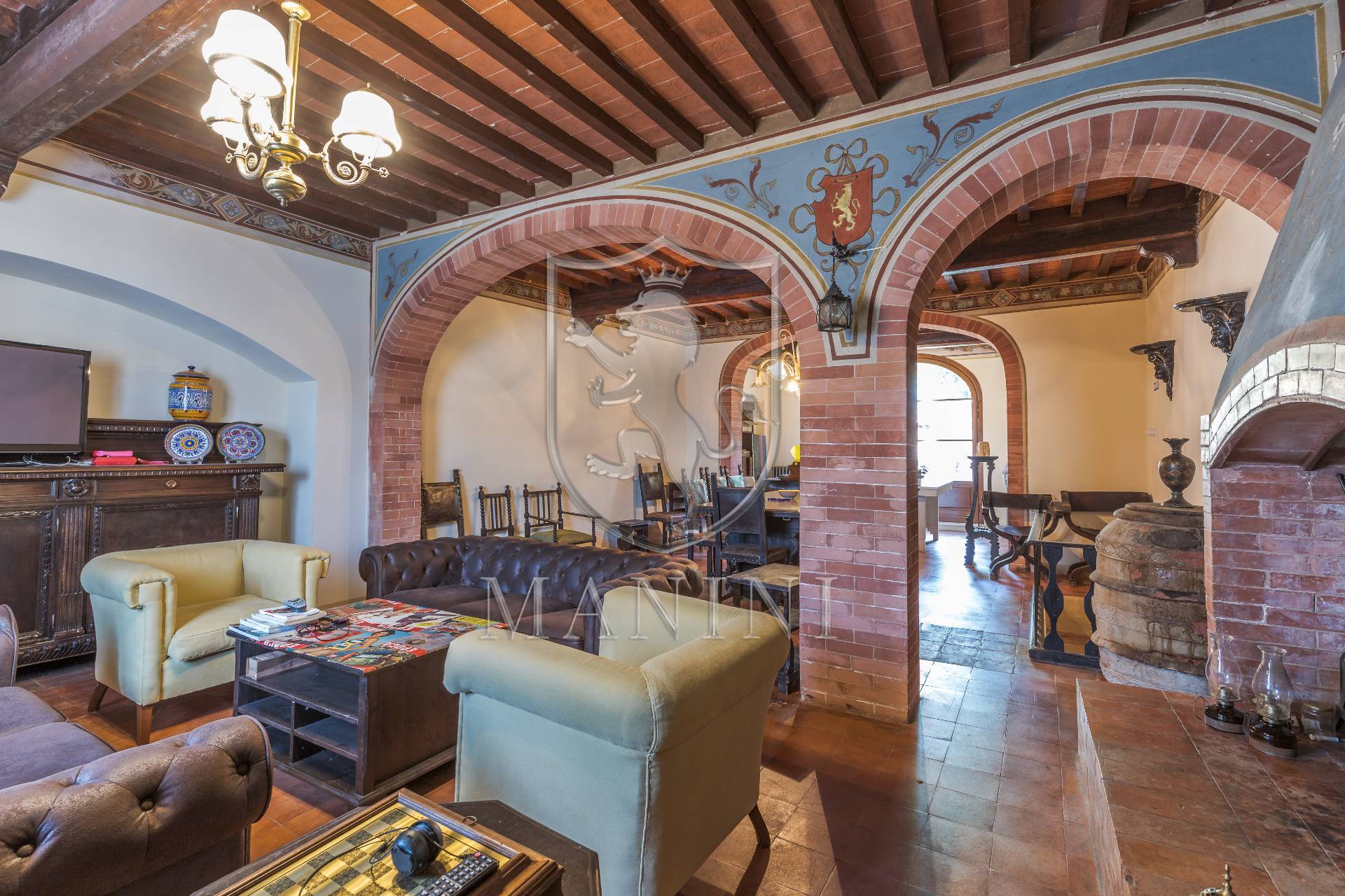 La propriet stata per la maggior parte ristrutturata mantenendo le caratteristiche storiche, pavimenti originali sia in cotto che in graniglia ,travi, travetti e soffitti affrescati.