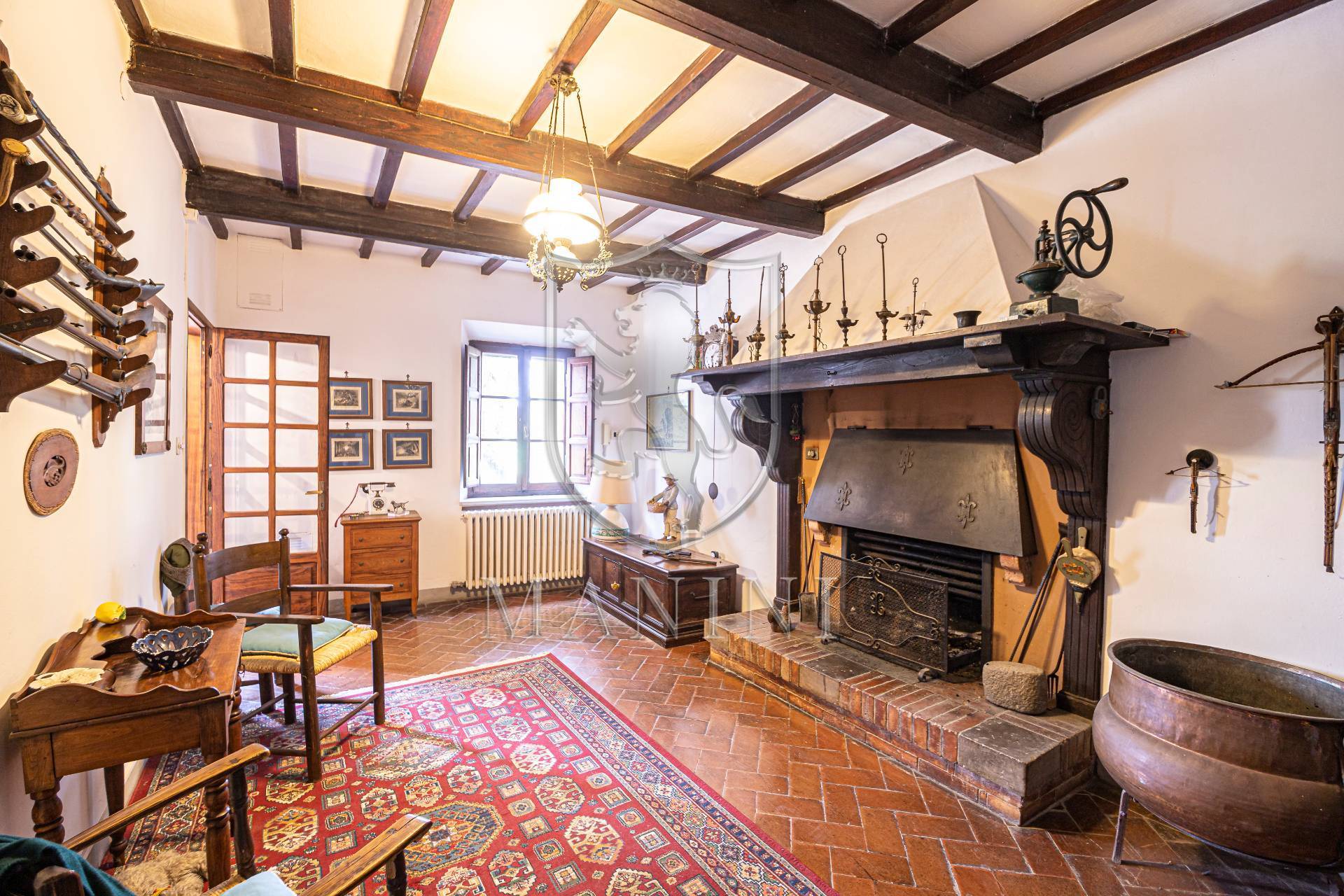 Ogni stanza ricca di dettagli storici, come camini in pietra, travi a vista e pavimenti in cotto antico, che contribuiscono al fascino unico della villa.