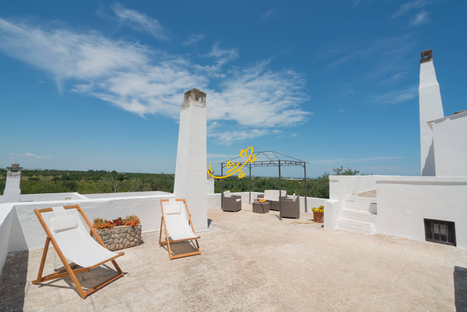 La masseria si sviluppa su circa 700 mq interni, circondata da 12.000 mq di uliveti e giardini mediterranei e ciliegeti.