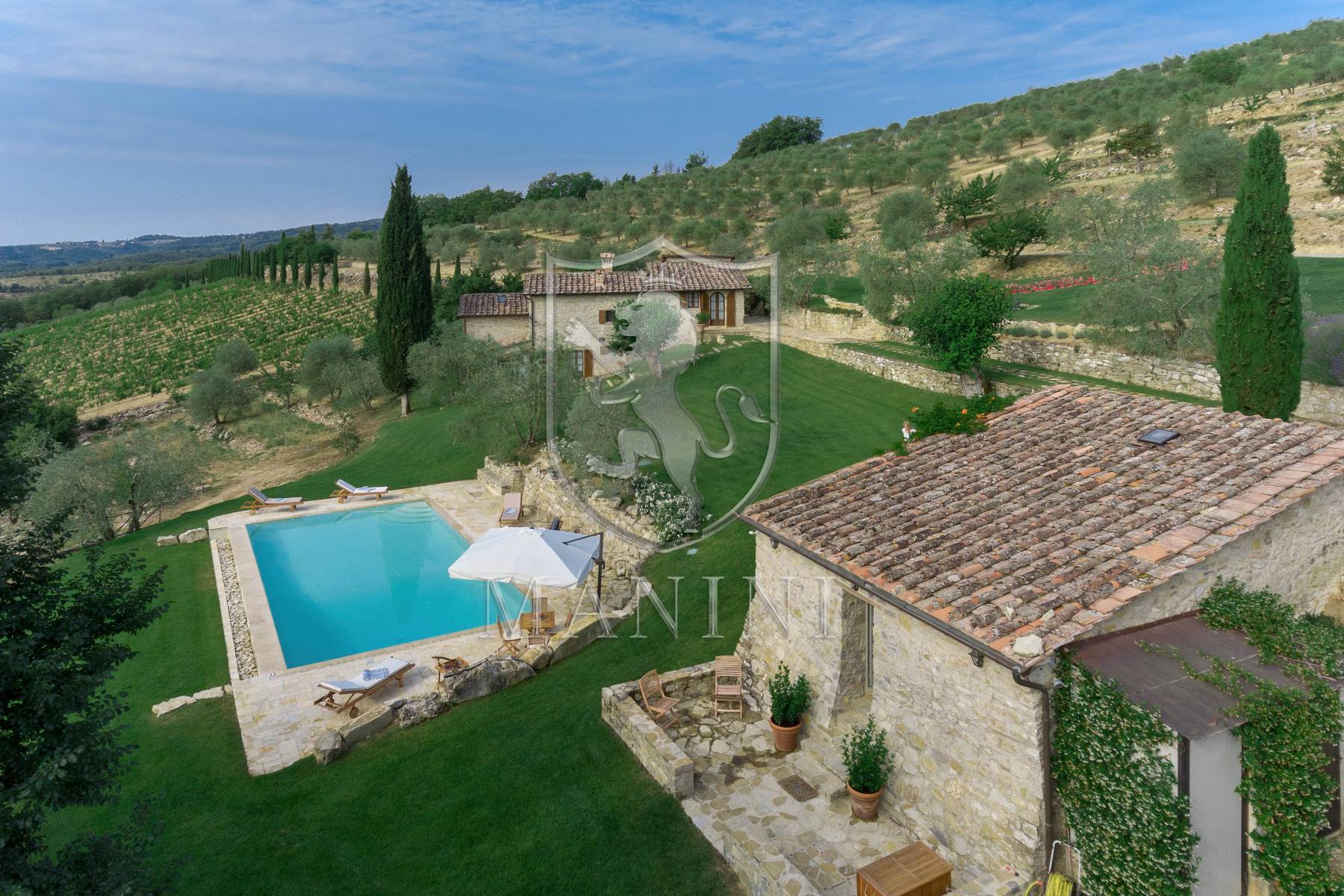 Casale con Piscina in posizione spettacolare con vista sulle colline del Chianti Classico e sui famosi vigneti del Chianti La propriet composta dal casale principale di circa 350 mq , dependance di circa 80 mq ed un zona relax e Spa con piscina riscaldata oltre alla piscina esterna.