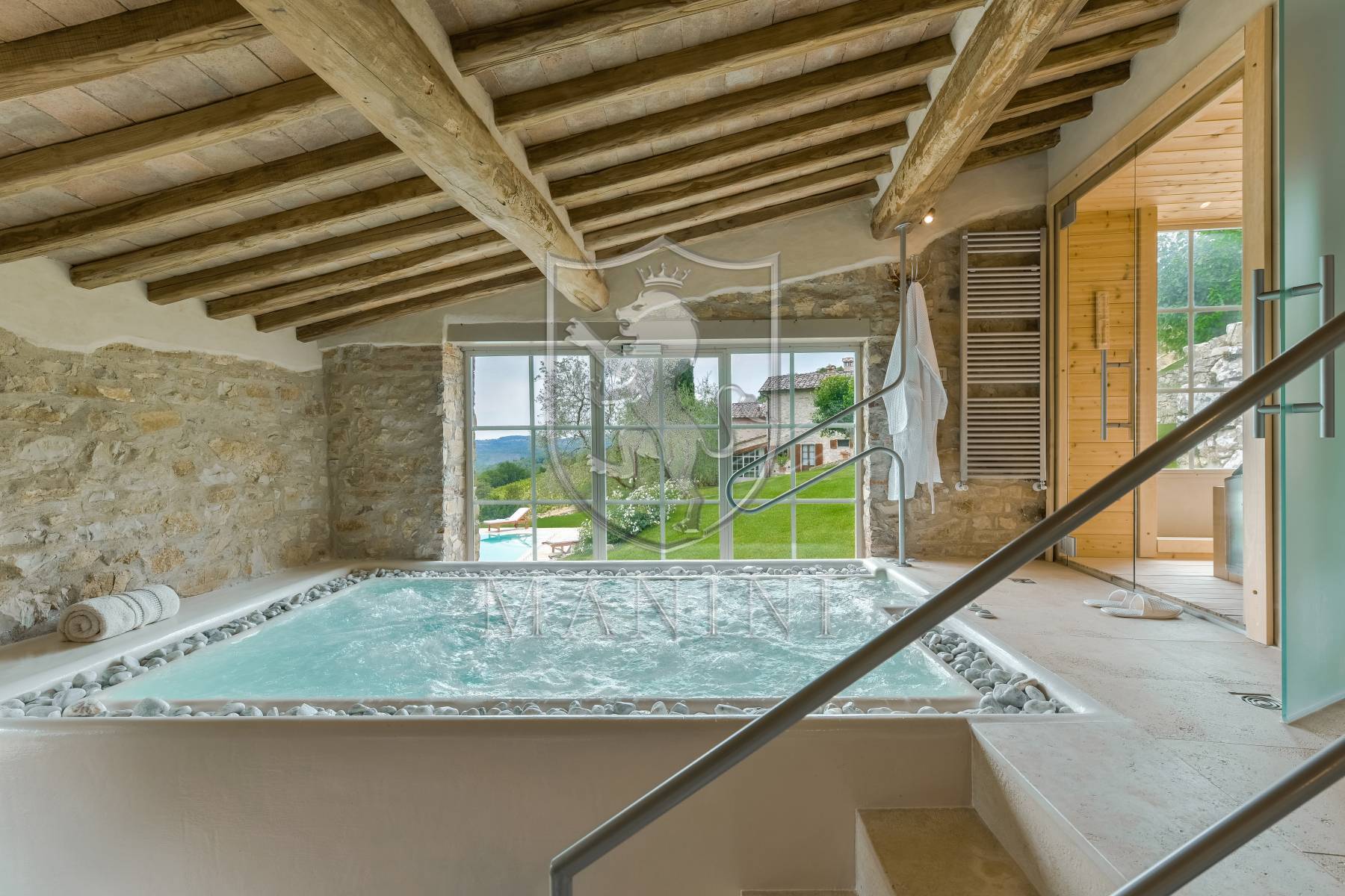 La propriet stata ristrutturata ed arredata con gusto e grande attenzione ai dettagli mantenendo i materiali ed un'architettura tipicamente toscana ma con finiture di pregio ed utilizzando materiali di grande qualit come Travertini , marmi, pavimenti in terracotta fatti a mano e travi i legno, utilizzando materiali chiari e donando alla struttura grande luminosit e charme rendendola autentica ma allo stesso tempo contemporanea.