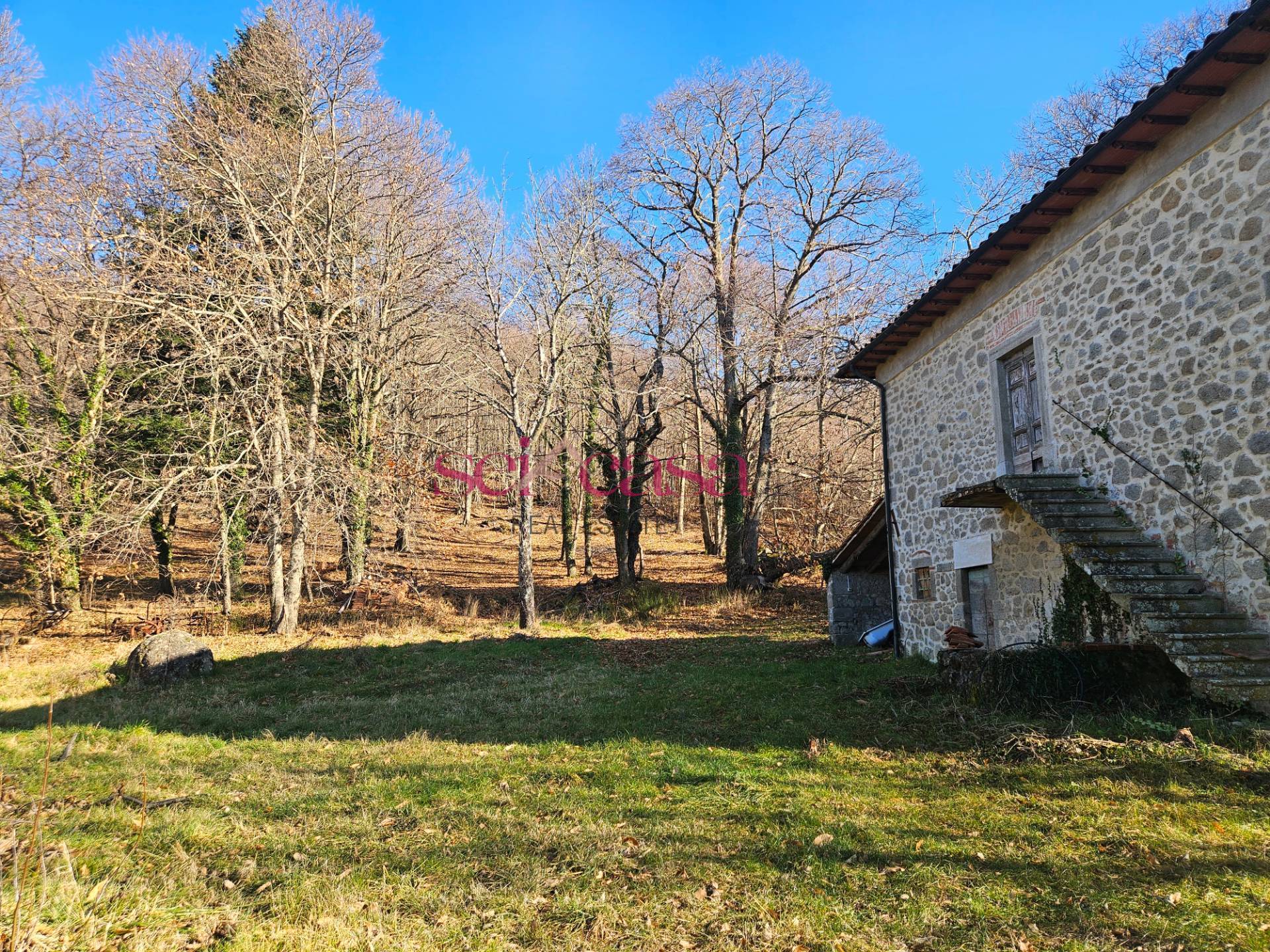 E' composto da varie cantine e ripostigli al piano terra, mentre dalla scala esterna si accede al piano primo dove si trova l'appartamento di 5 vani. Si trova in una posizione particolarmente suggestiva, circondato da un bel bosco di castagni e con vista sul Monte Labbro.