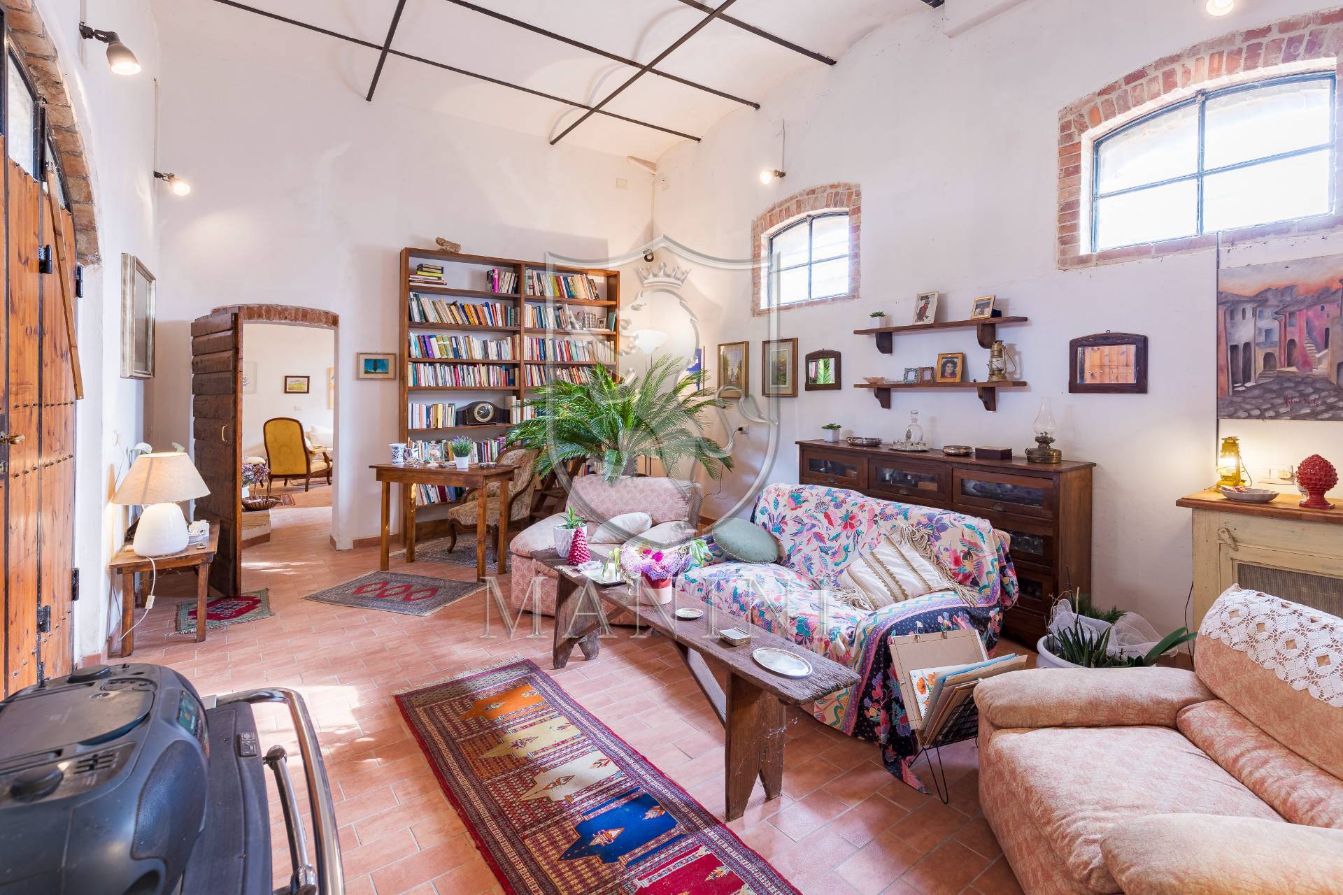 Il podere ha una superficie di 280 mq, e comprende: 1 ampio appartamento 1 ettaro di terreno agricolo con 100 piante di olivo 2 cantine / magazzine 1 garage 2 terrazze panoramiche con la zona barbecue La possibilit di realizzare una splendida piscina Ledificio ha mantenuto tutto il fascino della sua struttura originale con una forma a ferro di cavallo tipica dei casali di campagna di questa zona della toscana.
