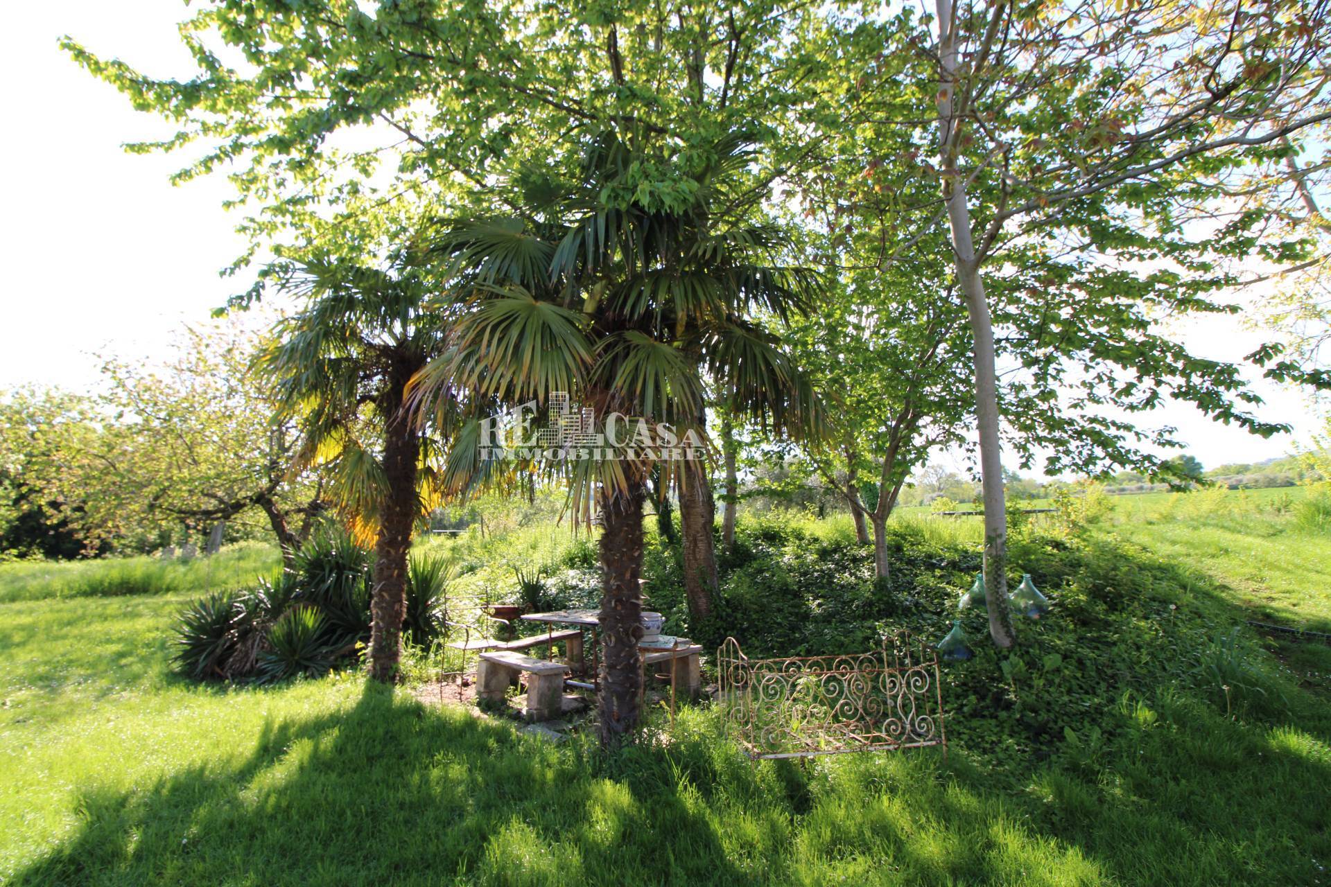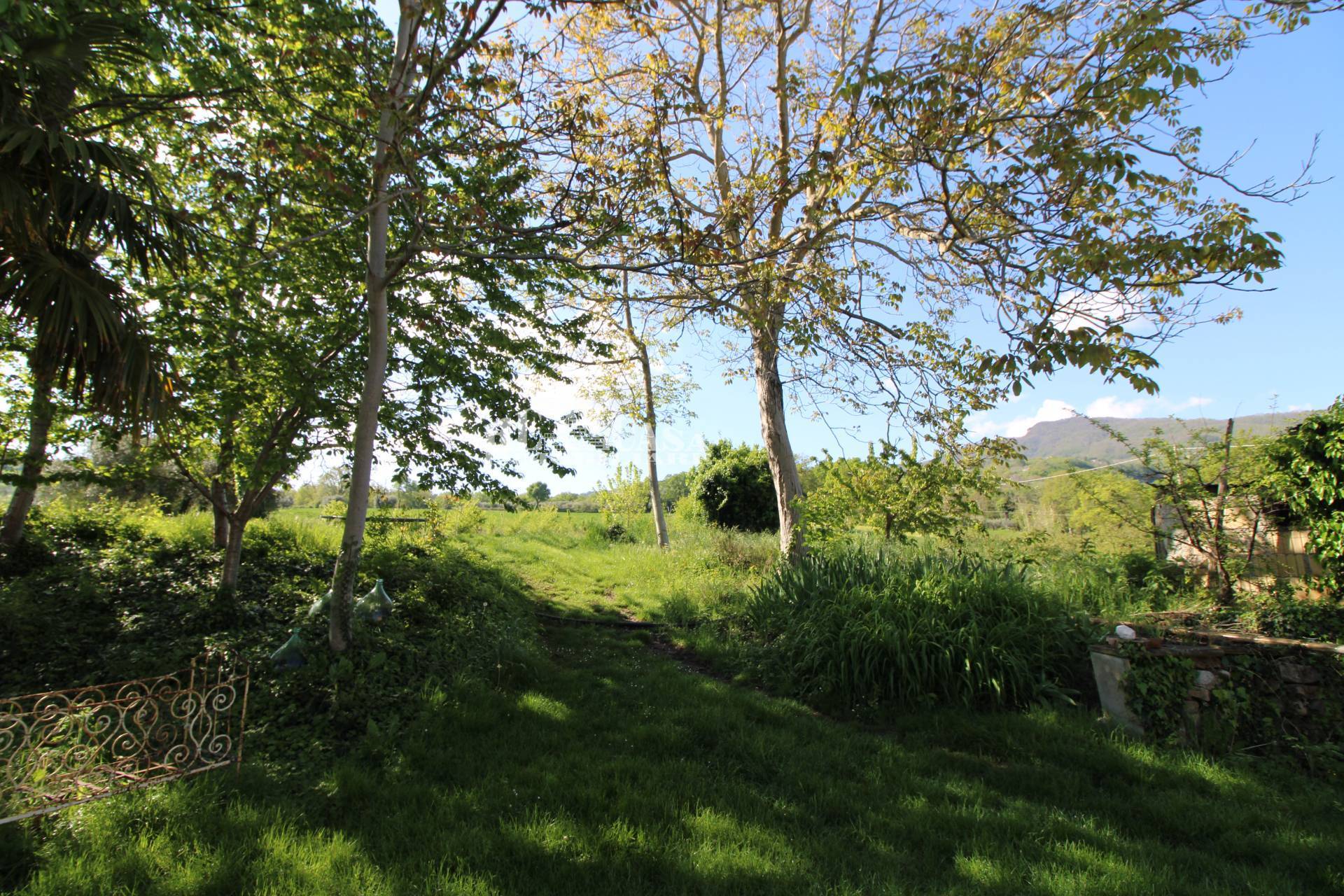La propriet vanta numerosi alberi, grandi e piccoli, alberi da frutto, piante, perenni, aiuole fiorite, ulivi, zone relax, possibilit di parcheggio, prati verdi e diverse aree adatte a grandi orti. Si estende su 9 ettari, di cui circa 4 ettari boschivi e 5 ettari coltivati '?'?(o da coltivare). Un ruscello attraversa la propriet e diverse strade si snodano all'interno delle zone boschive.