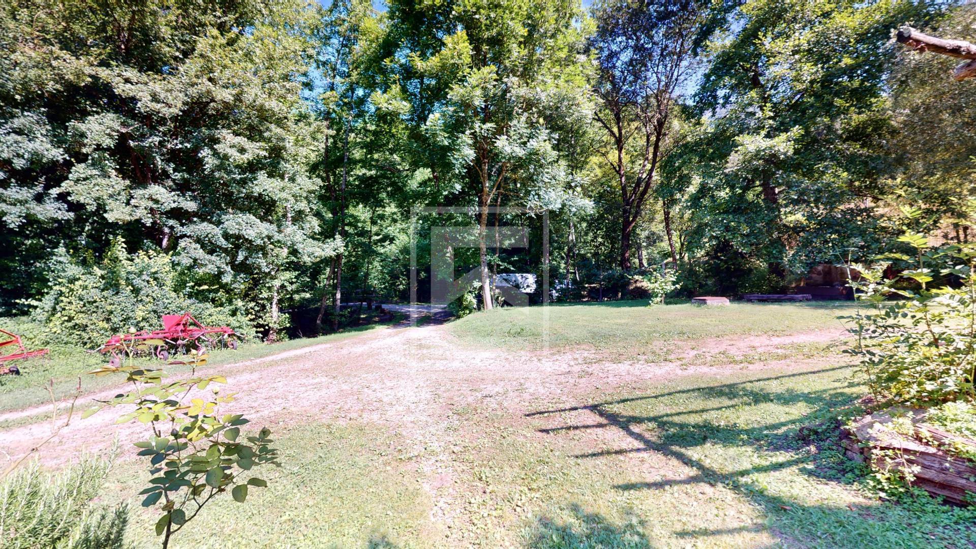 Il terreno circostante di circa 35.000 metri quadri, con prati contornati da due ruscelli e parte adibito a bosco.