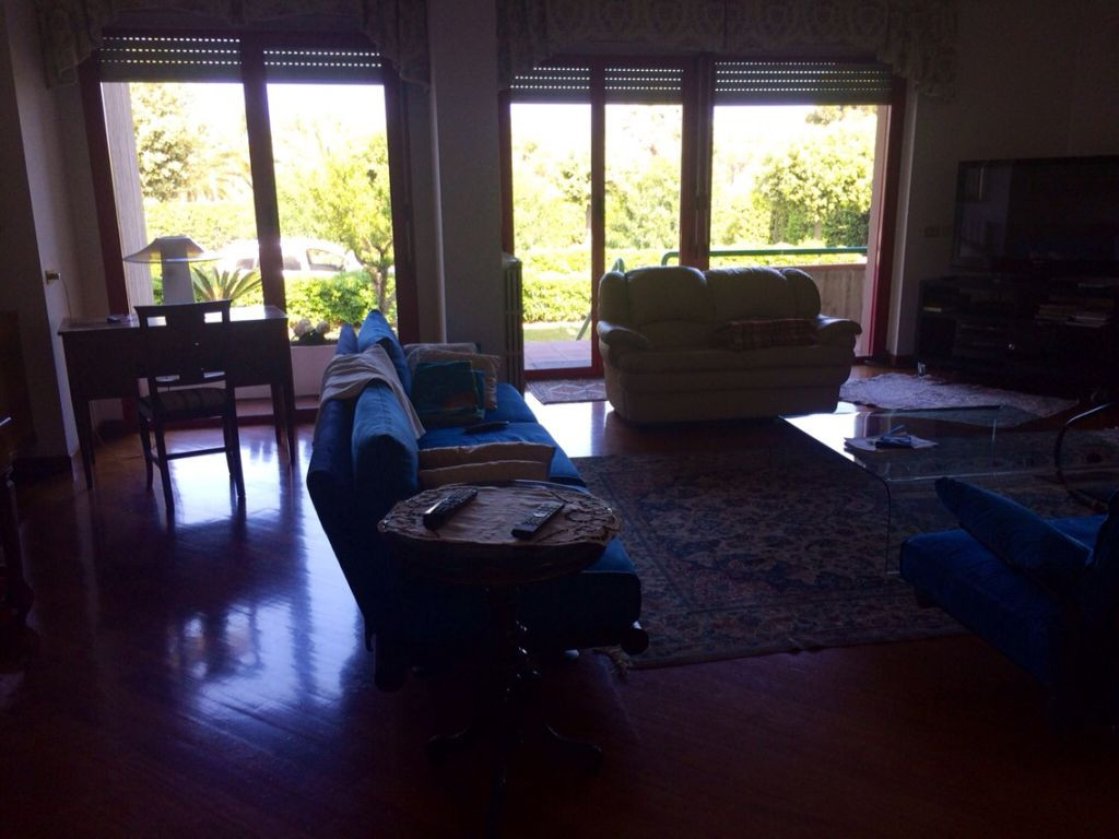 La villetta a schiera, di 475 mq si sviluppa su tre livelli: ingresso su un'ampio giardino, piano seminterrato ( mq 111,30) dove troviamo una cucina abitabile/ taverna e due giardini di 100 mq, al piano terra (mq 135,70) accessibile da scala esterna, un ampio salone con ampie vetrate scorrevoli che affacciano su una corte esterna di 105 mq circa, uno studio ed ampi terrazzi, tramite una grande scala passiamo al piano primo (mq 141) dove si sviluppa la zona notte con tre camere e doppi servizi oltre terrazzi e balconi per un otale di 47 mq, con vista mare. Completa la propriet un comodo garage di 40 mq. La zona living molto luminosa, sono presenti delle belle vetrate scorrevoli, alcune con accesso diretto sul caratteristico giardino interno.