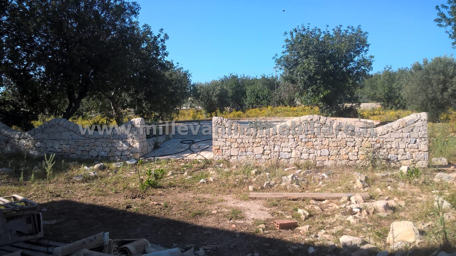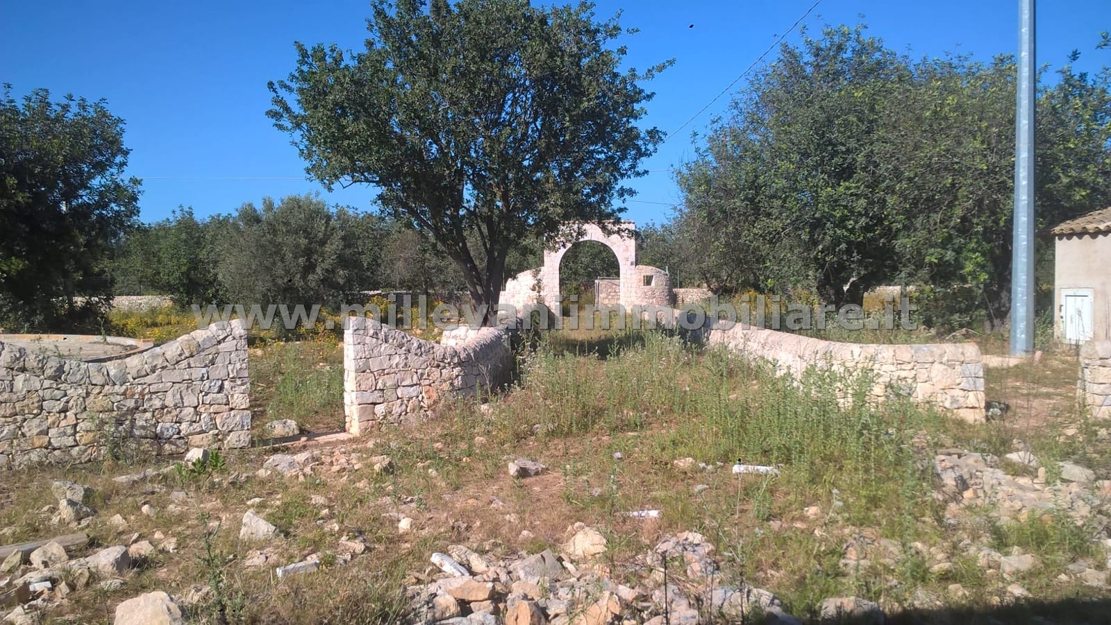 Il caseggiato insiste su un lotto di esclusiva pertinenza di circa 10.000 mq delimitato da confini realizzati con muri a secco, realizzazione tipica della campagna sciclitana.