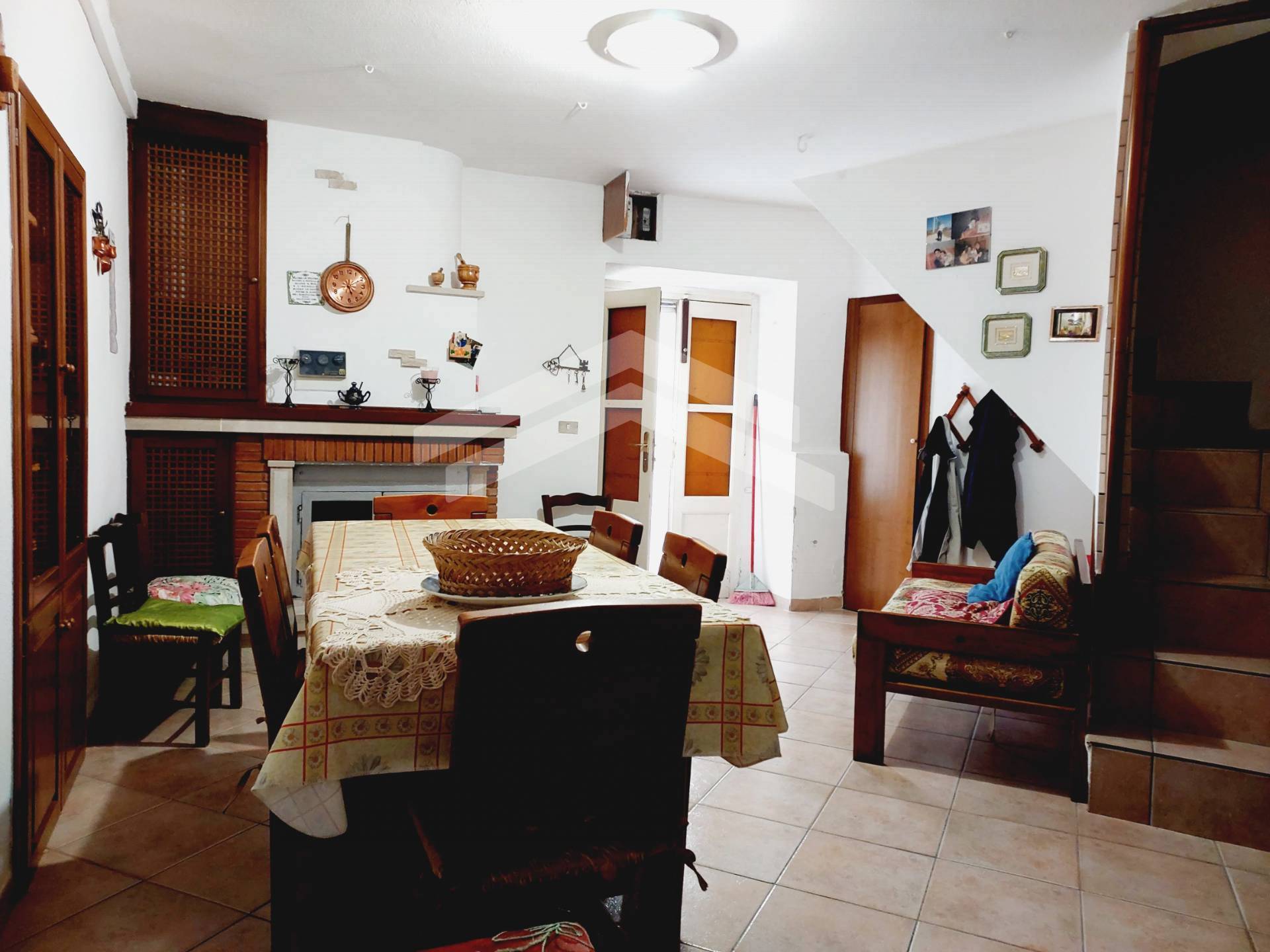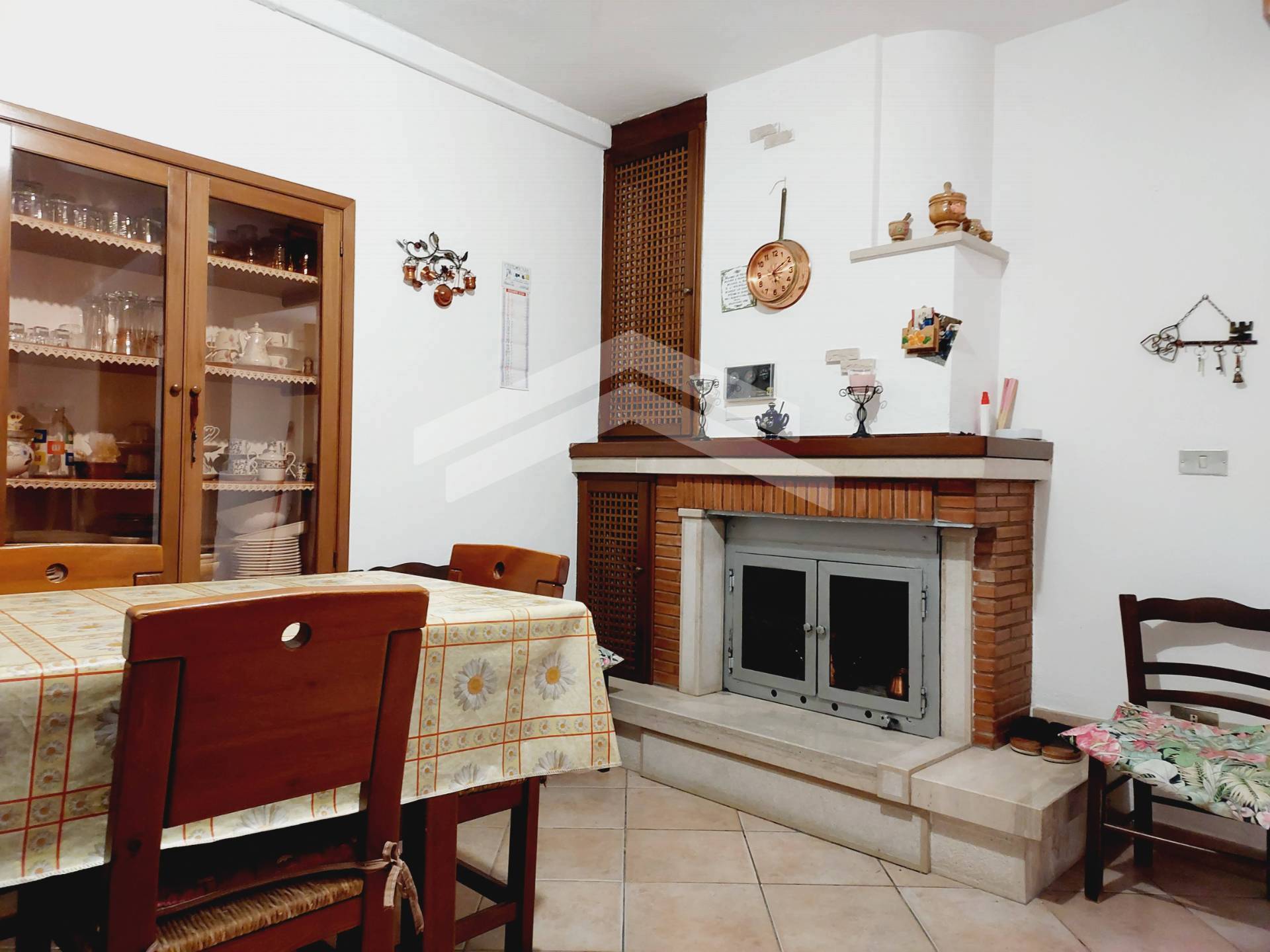 Al piano terra, l'ingresso si apre su un accogliente e luminoso soggiorno con un incantevole camino, ideale per le serate invernali.