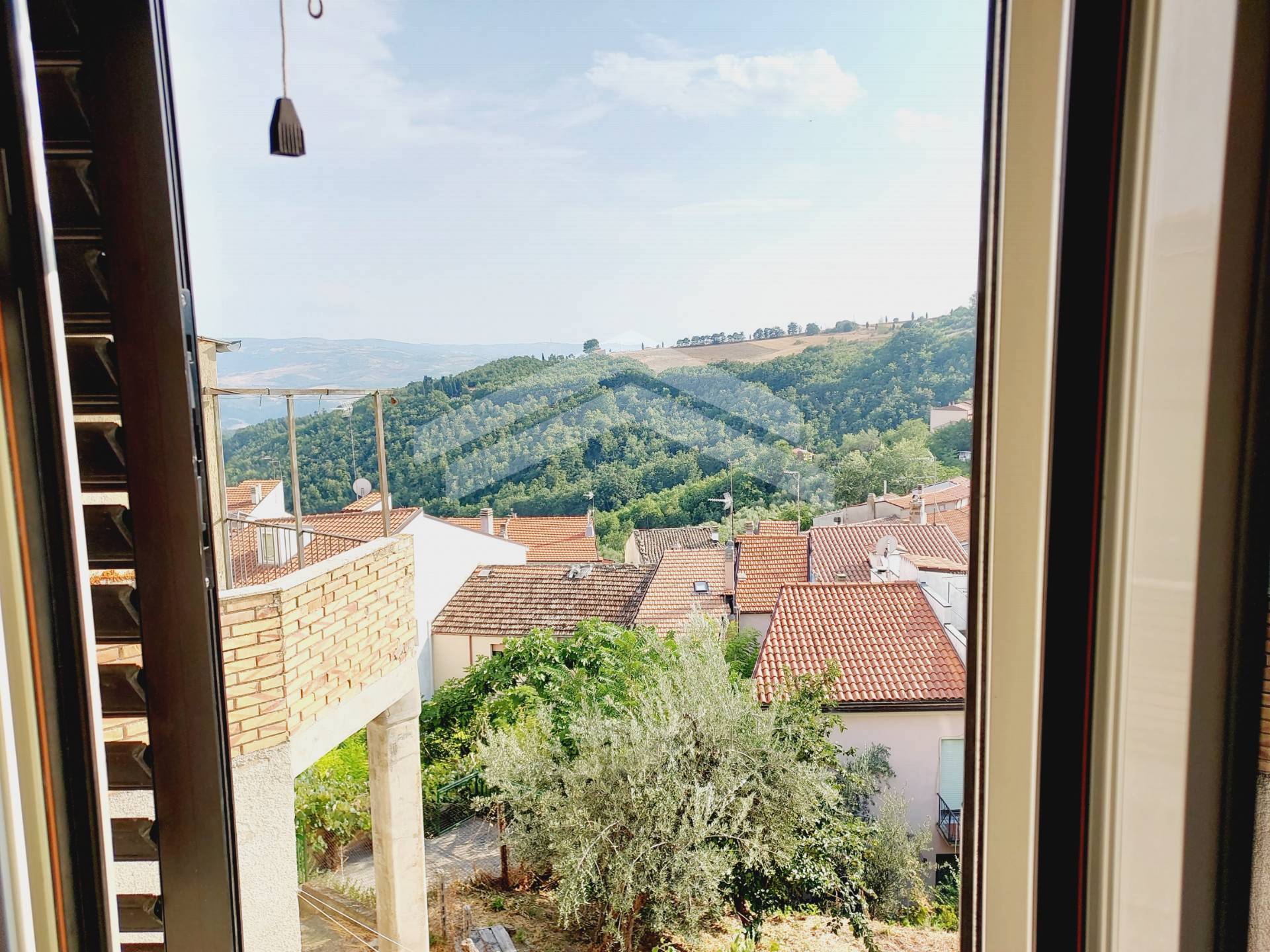 L'angolo cottura, con una finestra che incornicia una vista mozzafiato sul panorama circostante, rende ogni pasto un'esperienza unica.