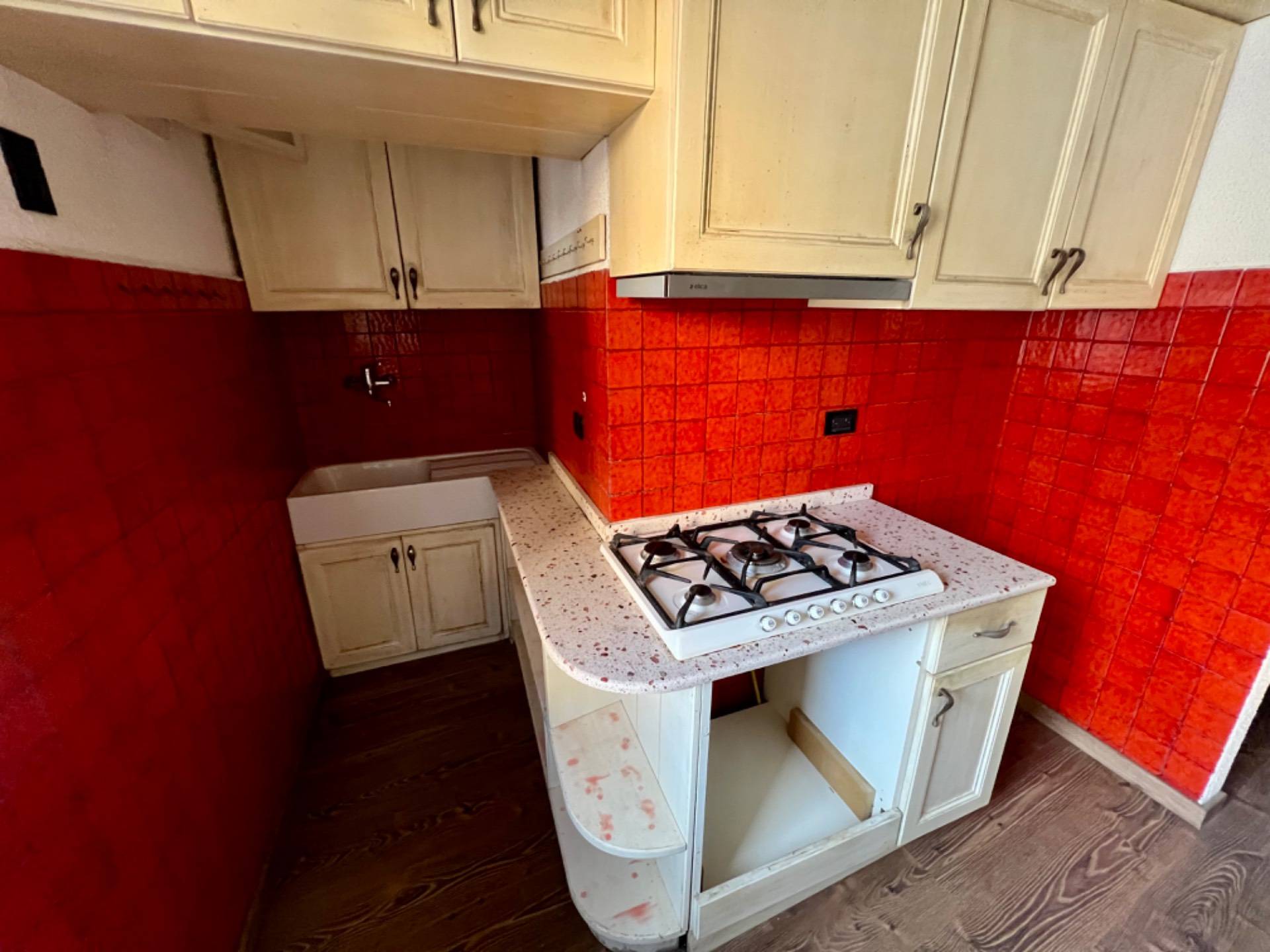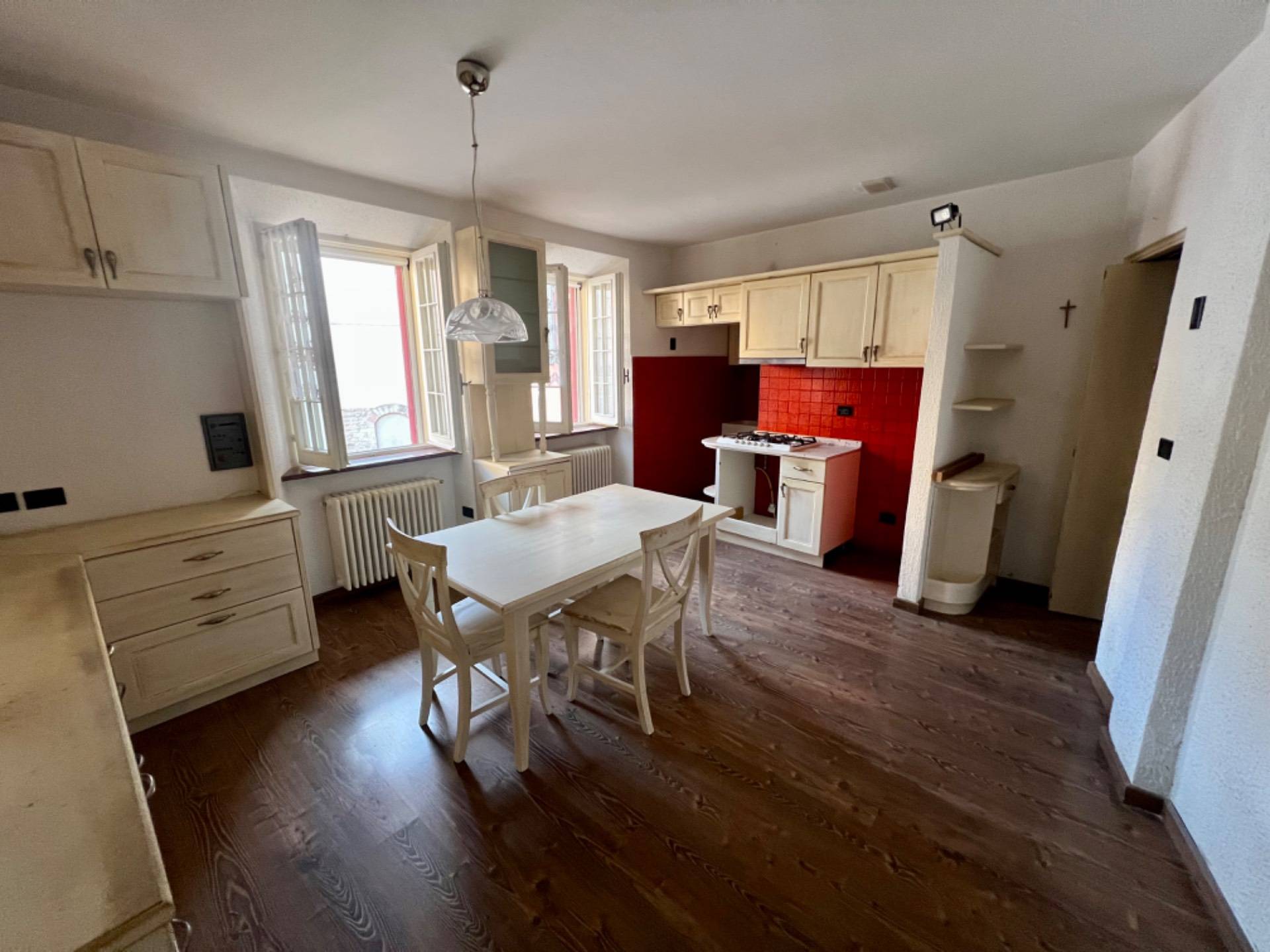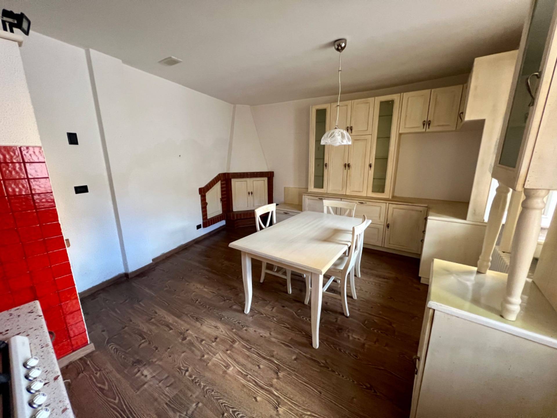L'immobile composta da un ingresso al piano terra, tramite una prima rampa di scale arriviamo al primo piano in cui presente un'ampia cucina luminosa con parquet che conferisce calore e accoglienza all'ambiente.