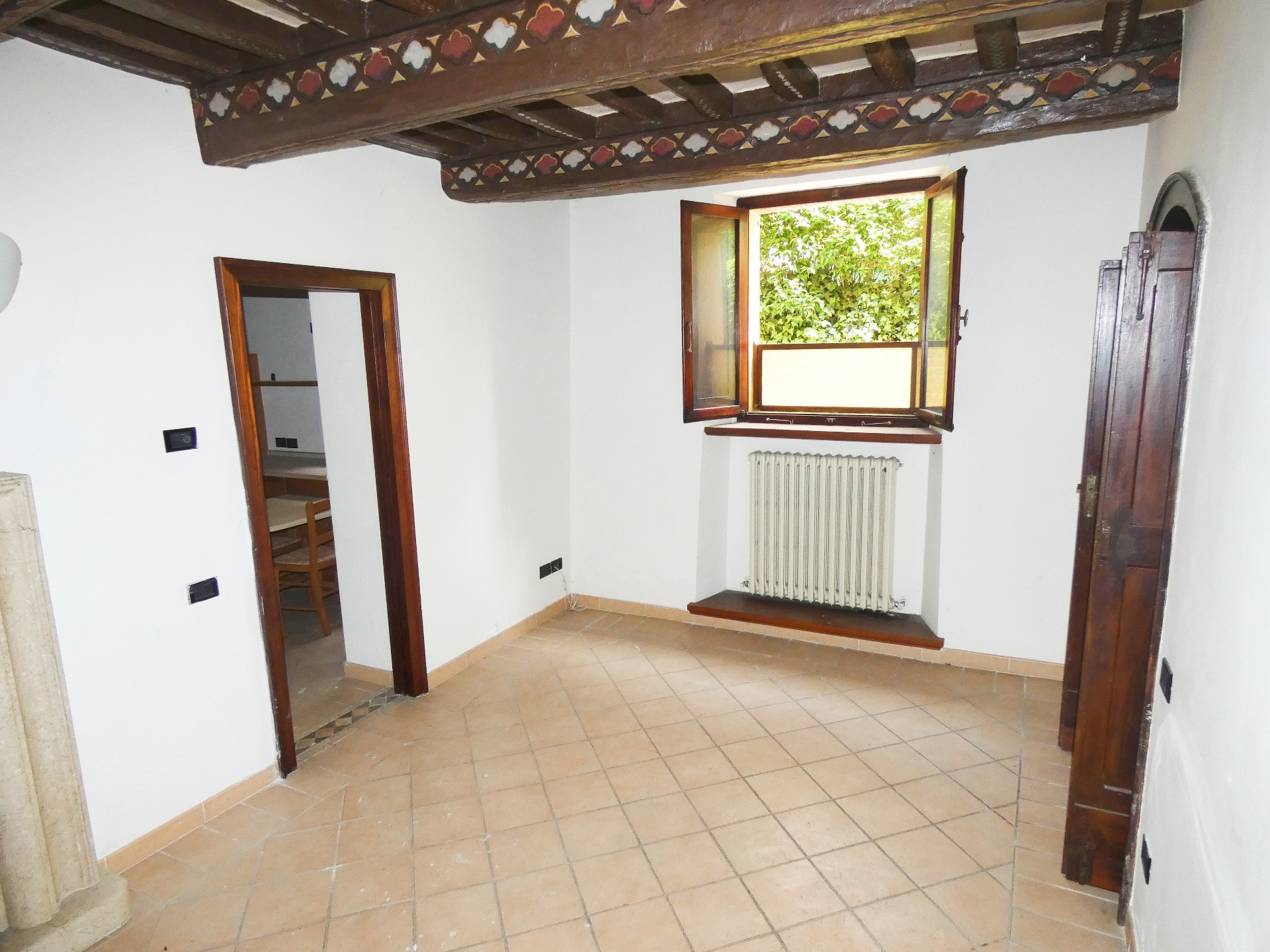 L'Immobiliare Peverini propone a due passi dal corso e con affaccio sui giardini pubblici un bellissimo e caratteristico cielo terra con ingresso indipendente di mq 160 su due livelli, composto da: Ingresso salone con camino, cucina abitabile, studio e bagno e ripostiglio, scala di accesso al reparto notte con 3 camere e un bagno con finestra, solaio in legno con affreschi, soffitta di mq 80 circa, cantina al piano sottostrada di mq 15, ripostiglio esterno.