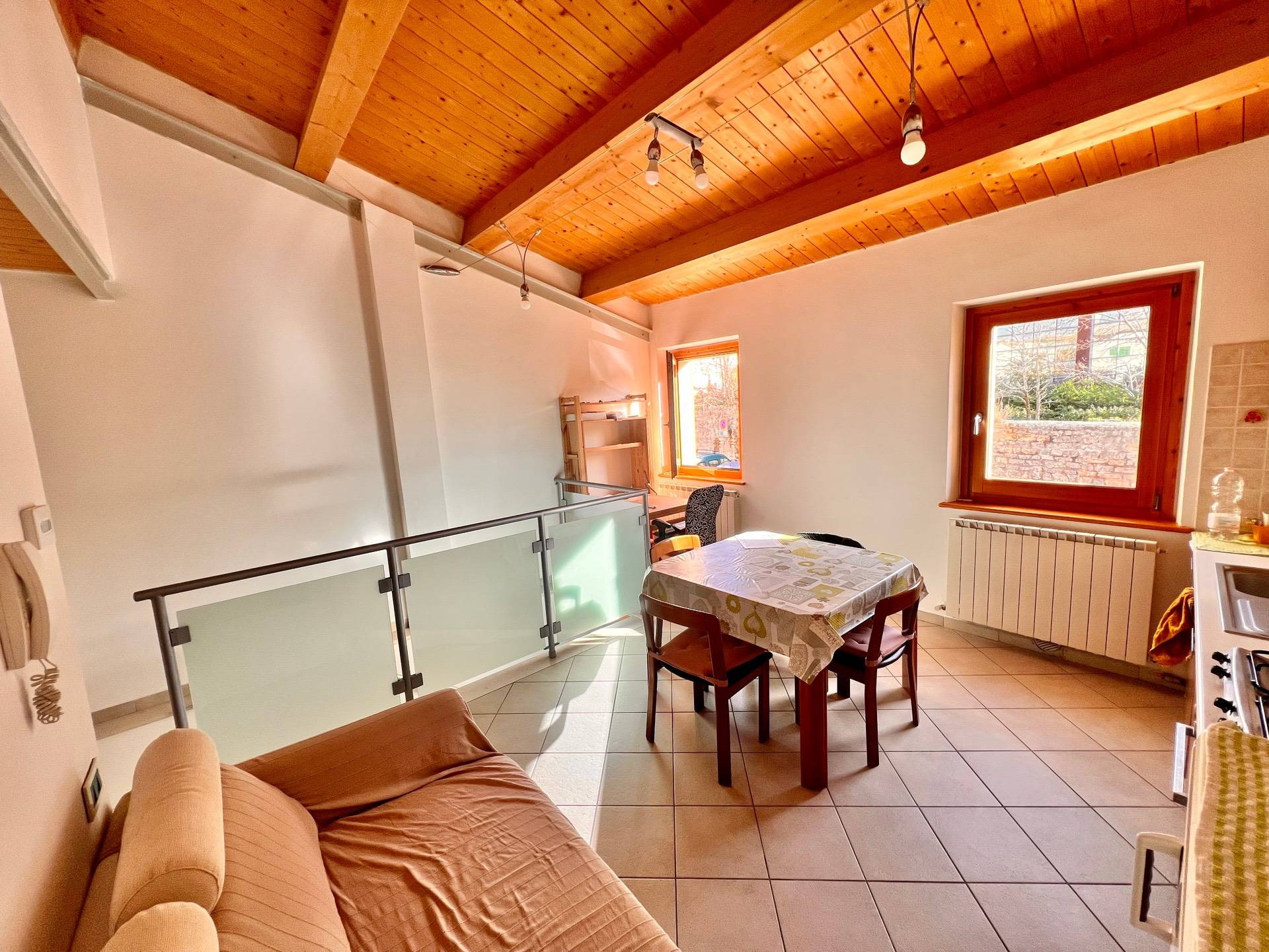 L'abitazione si suddivide in piano primo con soggiorno e angolo cottura, camera matrimoniale dotata di bagno con box doccia e velux.