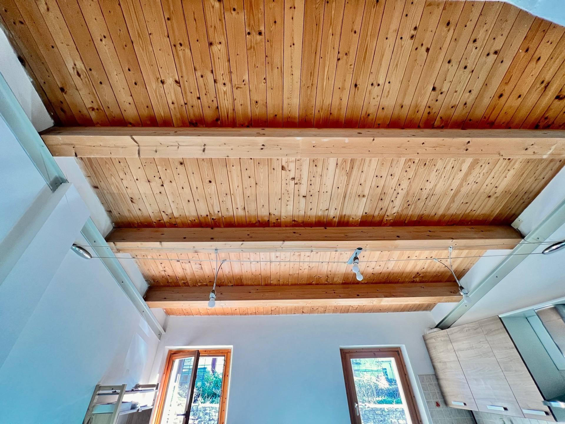 La casa si presenta in ottime condizioni, con alti soffitti con travi a vista e infissi in legno con doppi vetri.