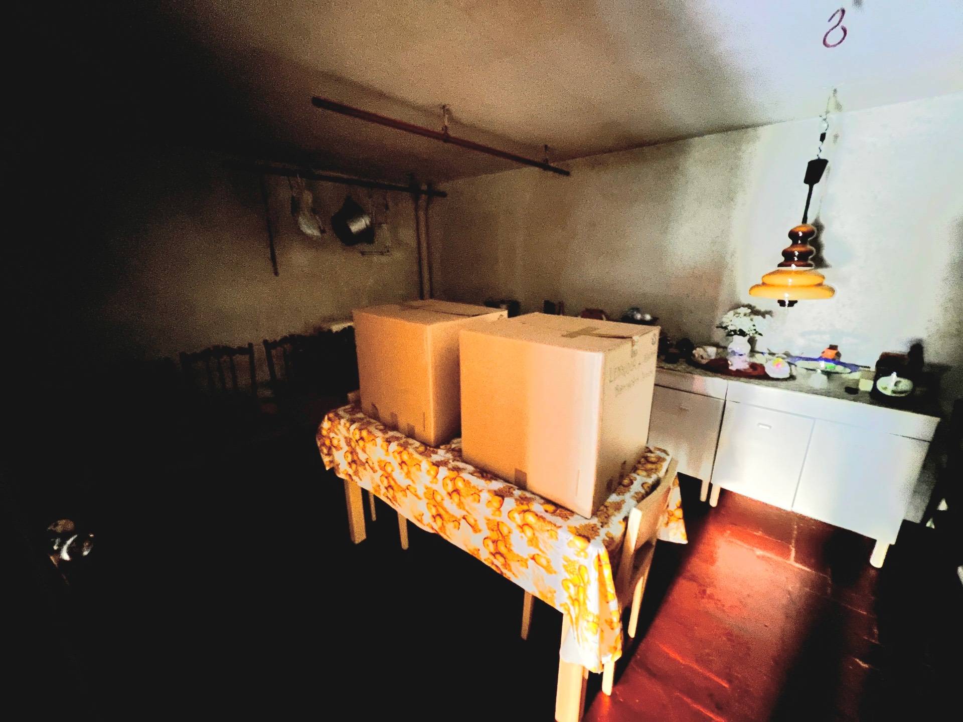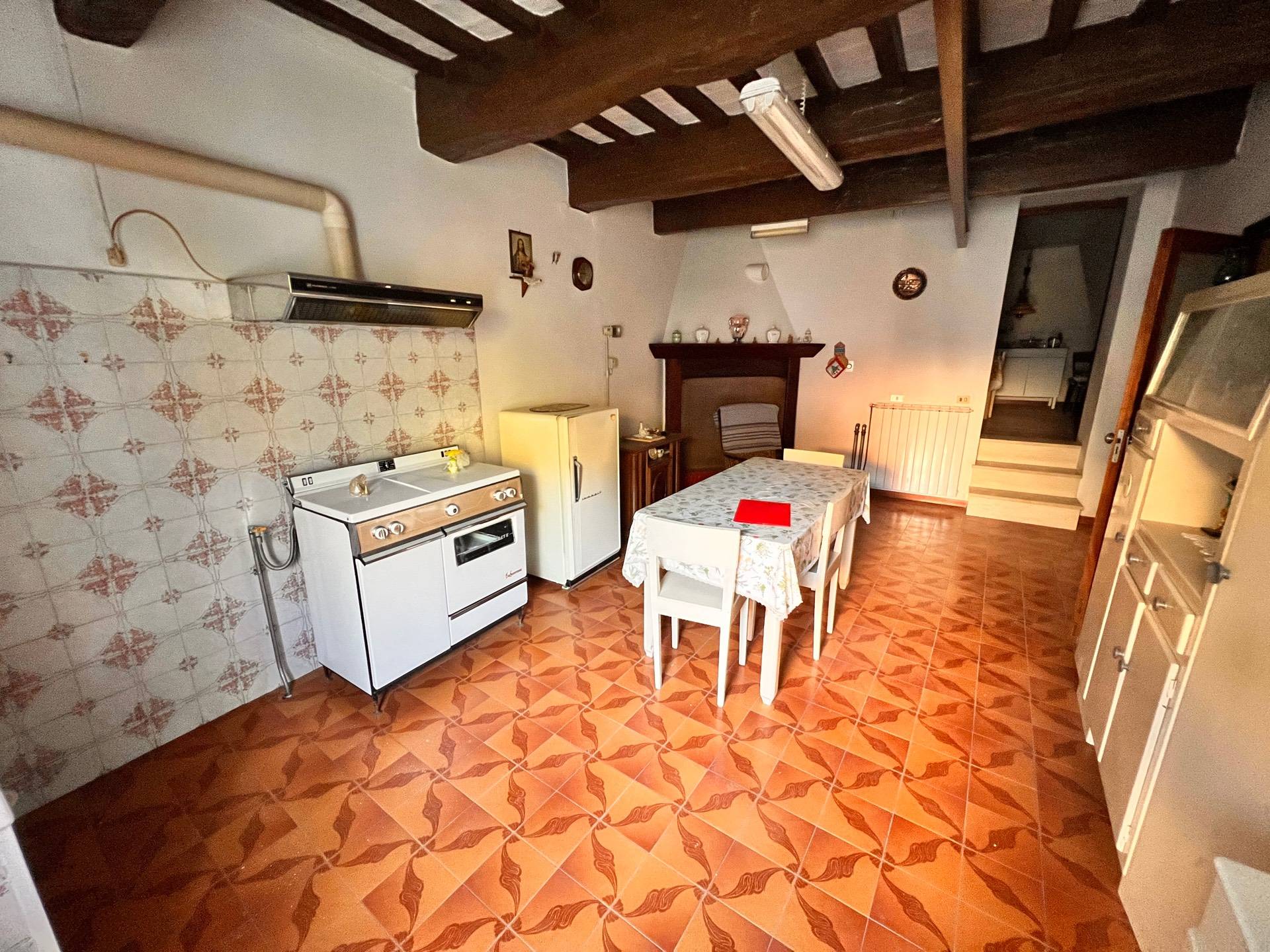 Tramite la scala interna arriviamo al primo piano costituito da soggiorno con angolo cottura e un ampio locale dispensa.