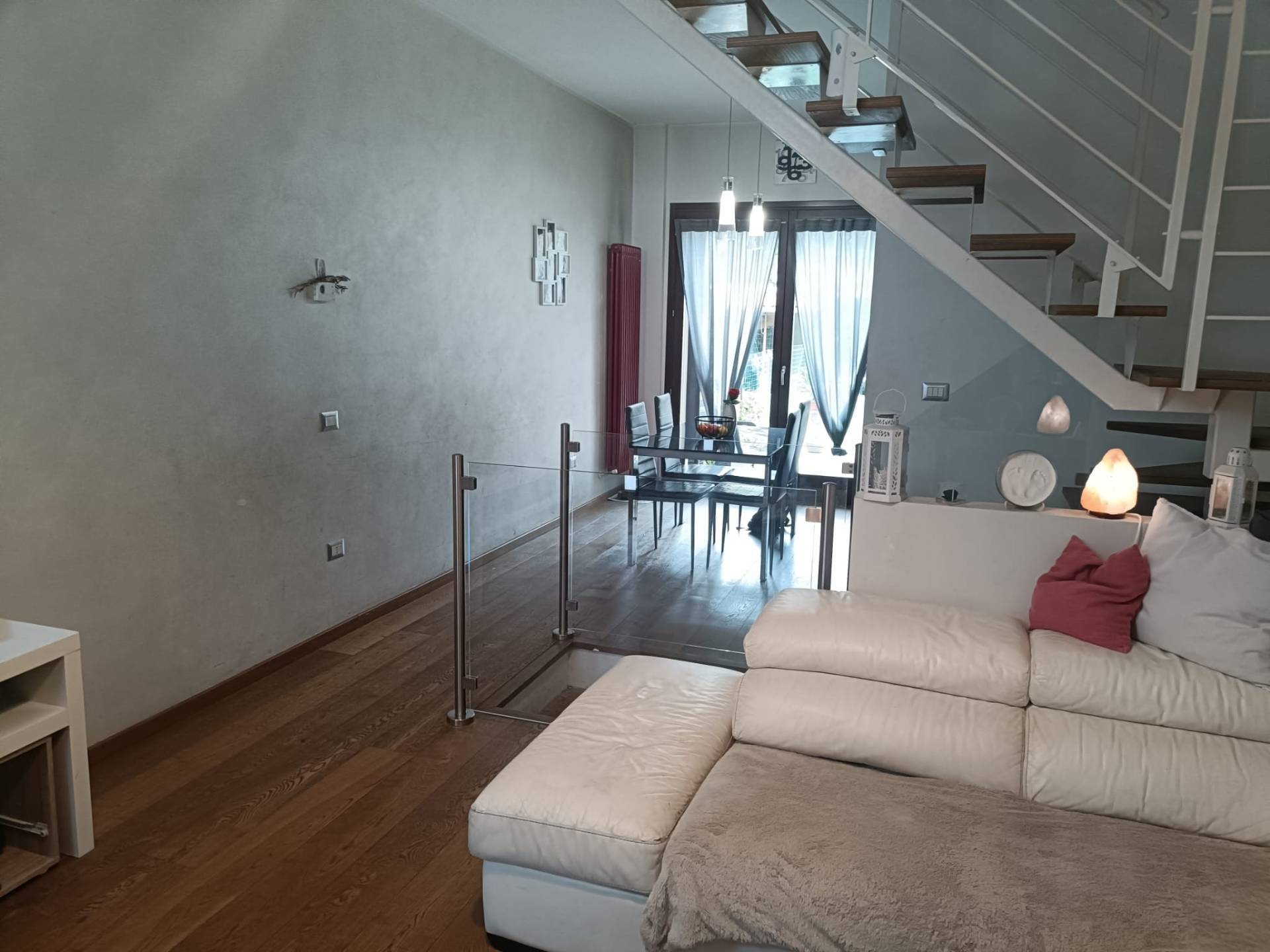 Al piano terra l'immobile si apre su un soggiorno con angolo cottura, un ambiente unico ma articolato in due zone funzionali.