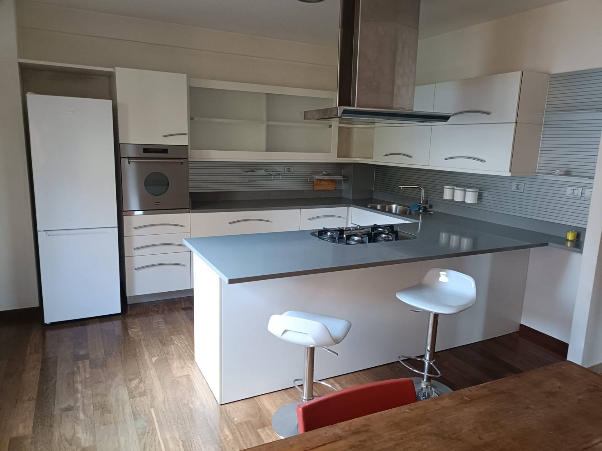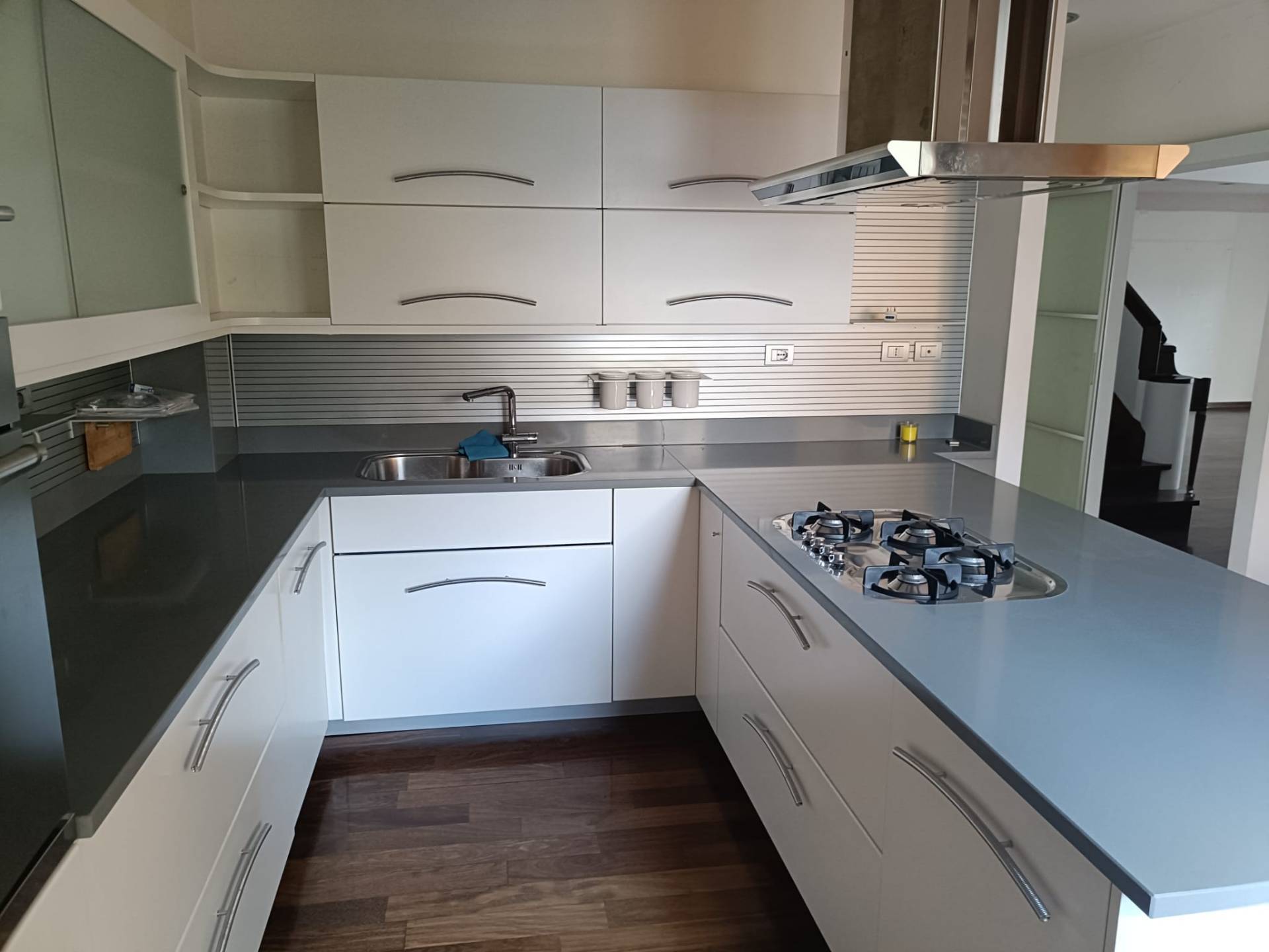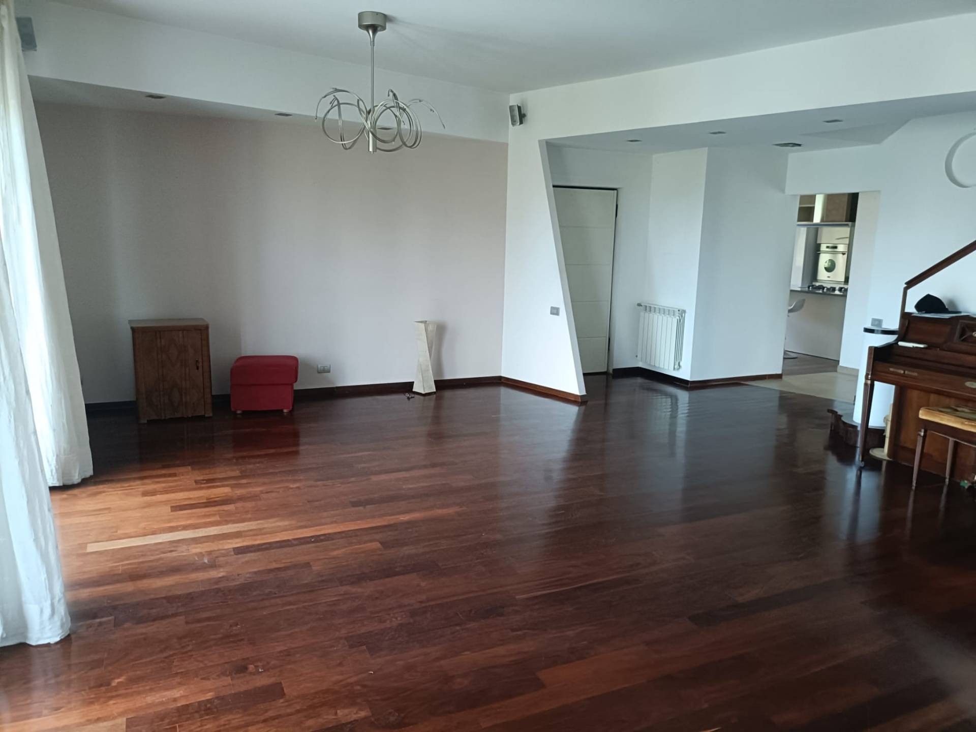 Al primo piano la zona giorno composta da ampio e luminoso salone, cucina abitabile, un piccolo studio, un bagno, tre balconi; Al piano superiore, la zona notte composta da una camera matrimoniale con bagno privato e due cabine armadio, altre due camere, un bagno e tre balconi.