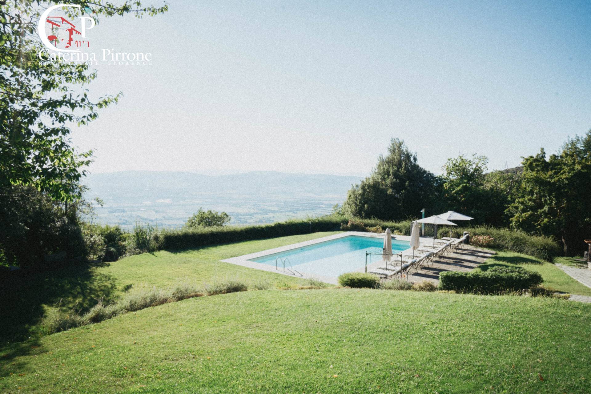 Arezzo, a solo 15 minuti in localit S. Andrea a Pigli, in bellissima posizione collinare e panoramica immersa nel verde vendesi bella propriet con due coloniche in pietra entrambe libere su 4 lati con parco e grande piscina con vista sulla Val di Chiana, e pozzo.