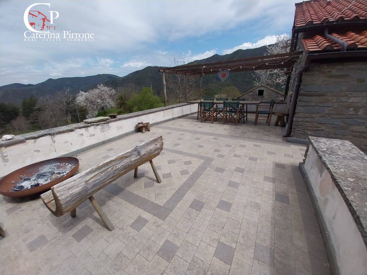 All'esterno giardinetto, antico forno a legna ristrutturato, loggia e terrazza panoramica, oltre a magazzino con altro vano staccati dalla casa, e cappella privata condivisa al 50% con la propriet confinante.