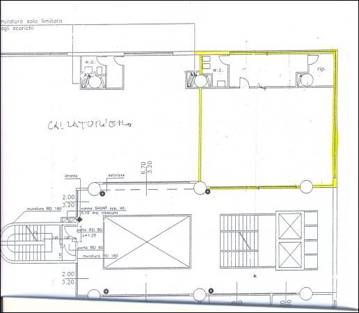 Ascoli Piceno, localit Monticelli, in centro commerciale/direzionale, locale di mq 110 con ampie finestrature esterne, due ingressi , quattro vetrine, due bagni, posto al primo piano con ascensore.