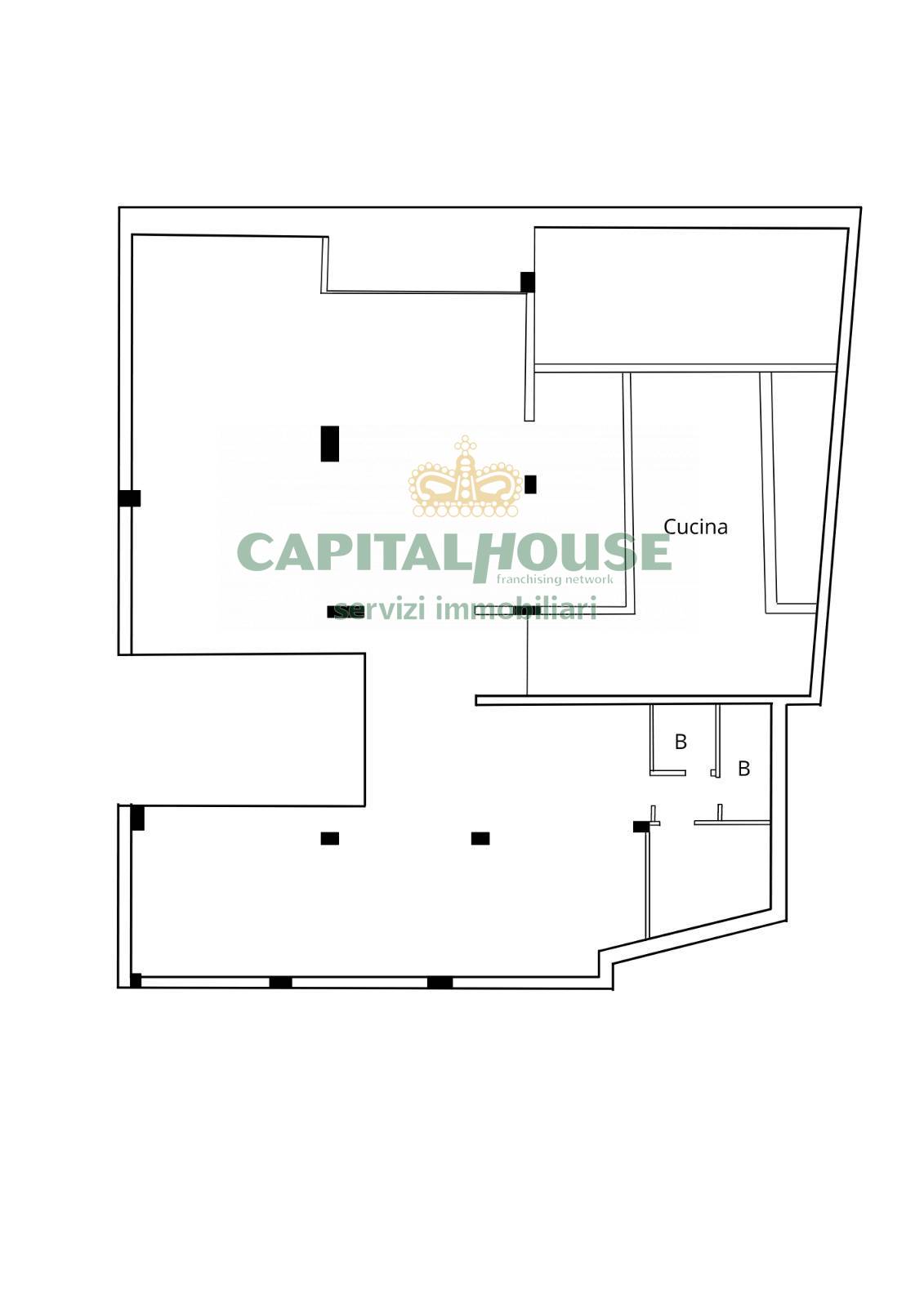 Il locale ha una superficie interna di circa 305 mq, cosi diviso: unico ampio ambiente all'ingresso con bagno e cucina retrostante.