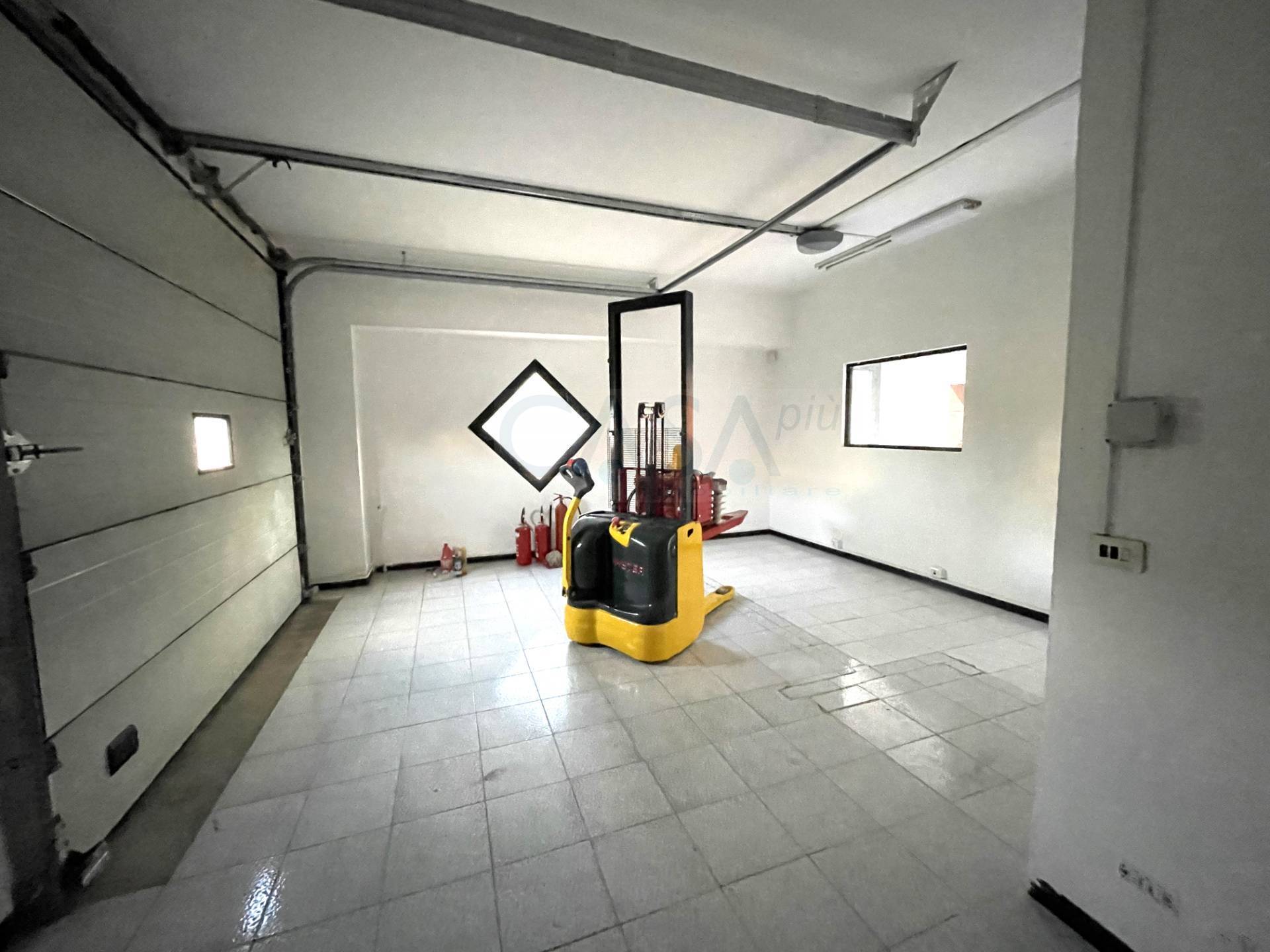 Accesso mezzi: Ampio ingresso con serranda elettrica motorizzata, perfetto per carico/scarico merci con muletti o furgoni.