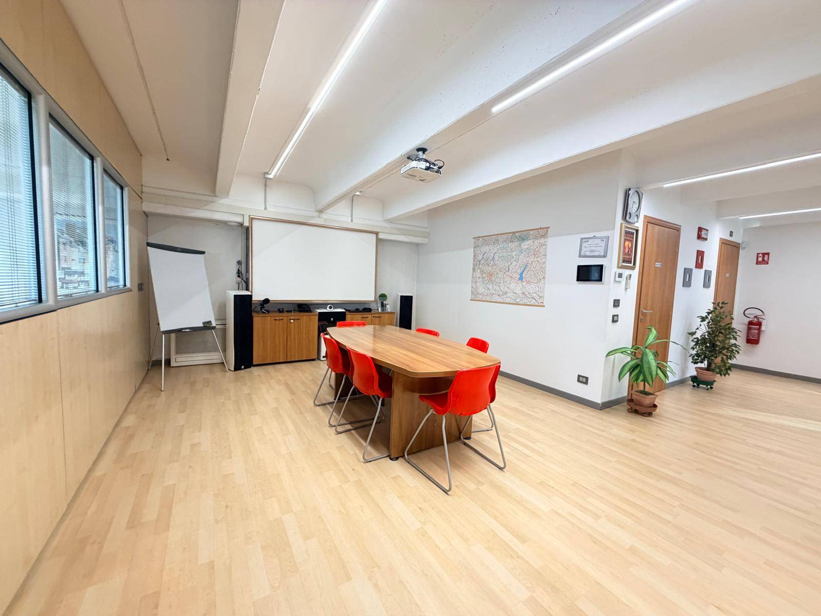 Sala Riunioni Attrezzata: Completa di tavolo direzionale, sedute di design e impianto di proiezione.
