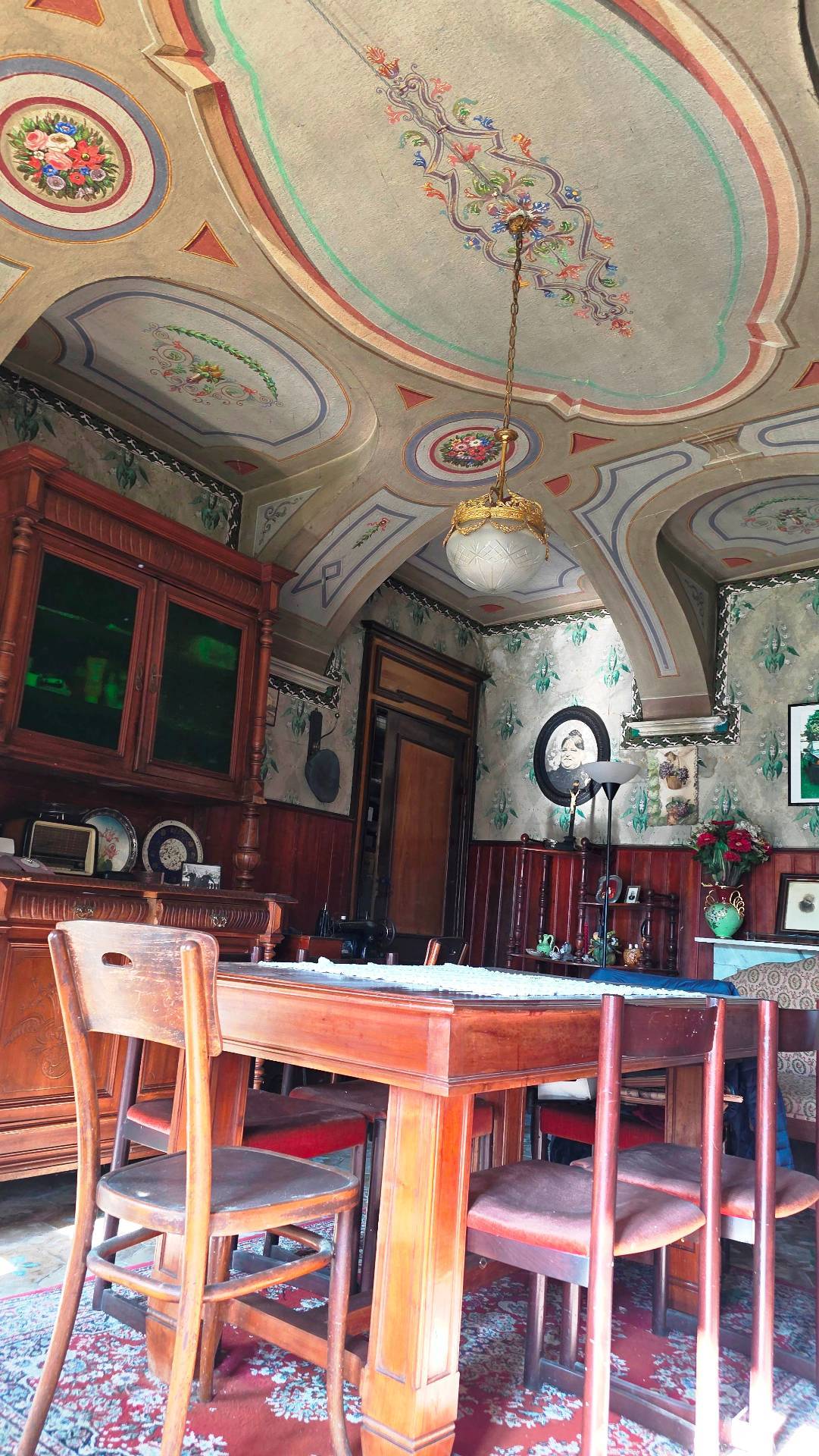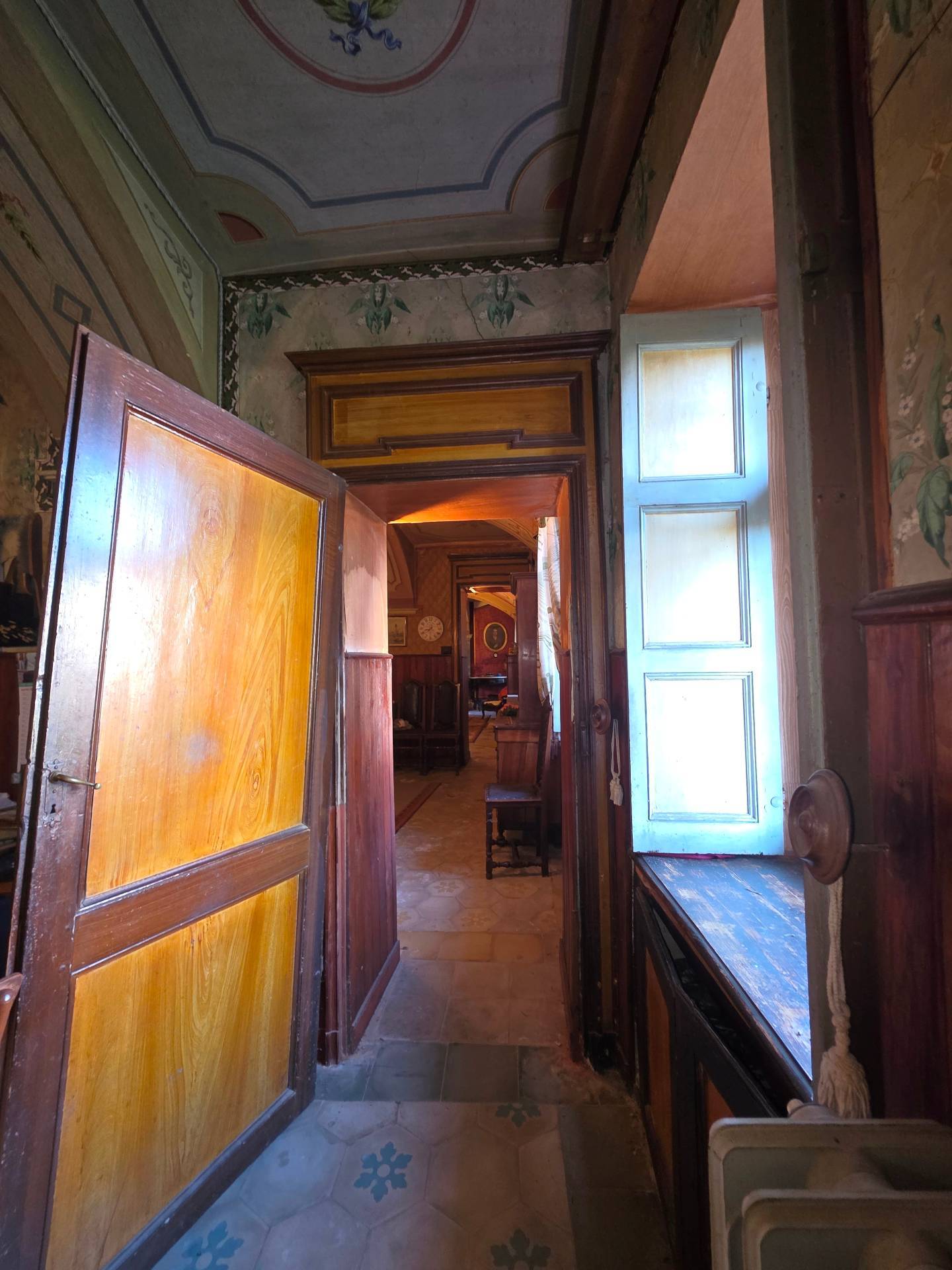 Descrizioni degli ambienti: Al piano terreno troviamo la cucina, la sala da pranzo, una camera da letto e il grande salone caratterizzato dai soffitti finemente affrescati e decorazioni originali Il primo ed il secondo piano, sono un susseguirsi di suggestive stanze per un totale di nove camere da letto Dal secondo ed ultimo piano si accede al sottotetto, dove recentemente stato effettuato un rifacimento integrale della copertura.