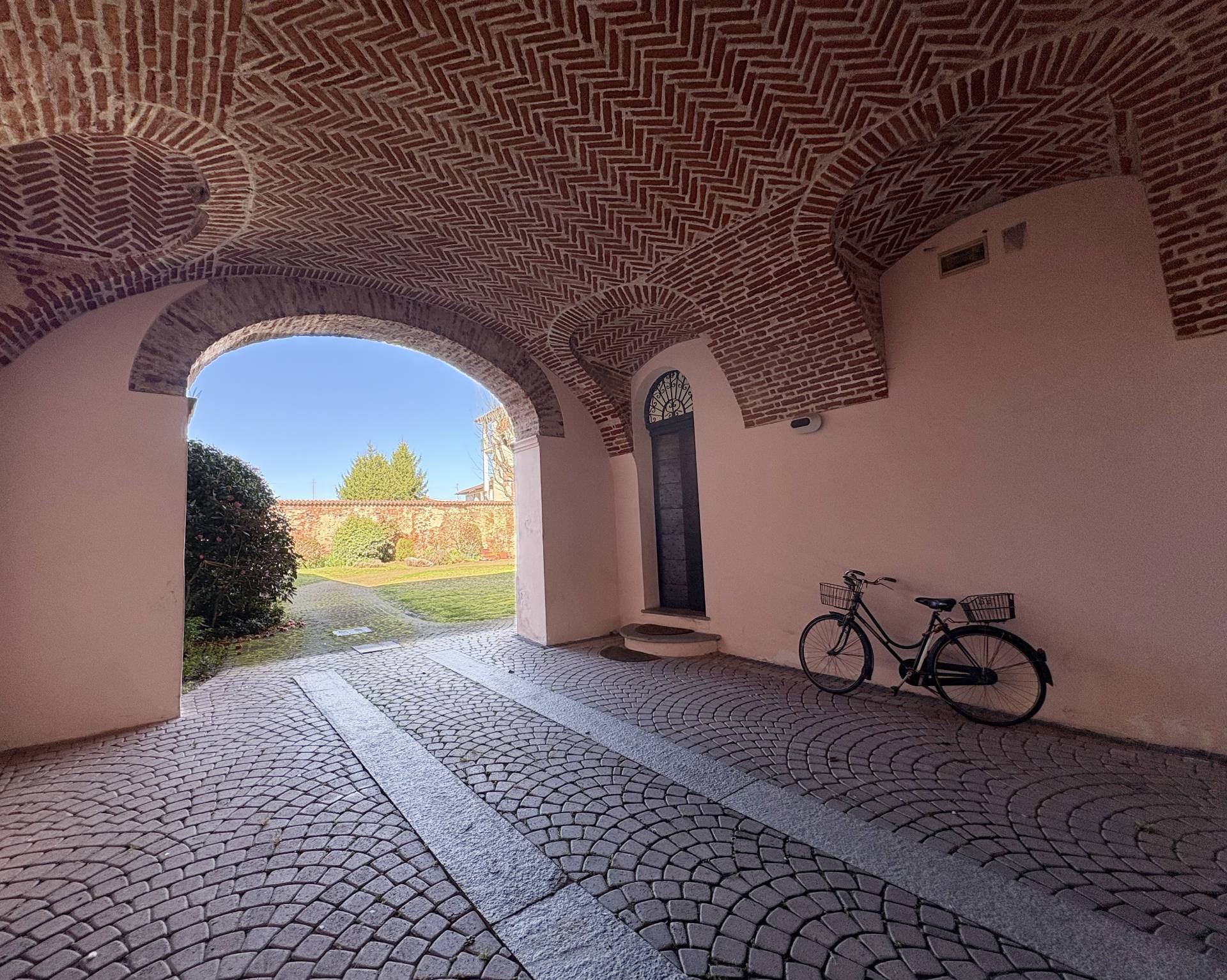 Su Via Roma ci sono lingresso carraio, accessibile attraverso un magnifico portone ligneo che si apre sullandrone con voltone a botte in laterizio sabbiato a vista, e lingresso pedonale che conduce al piano terra nellattuale studio medico indipendente rispetto alla restante parte abitativa.