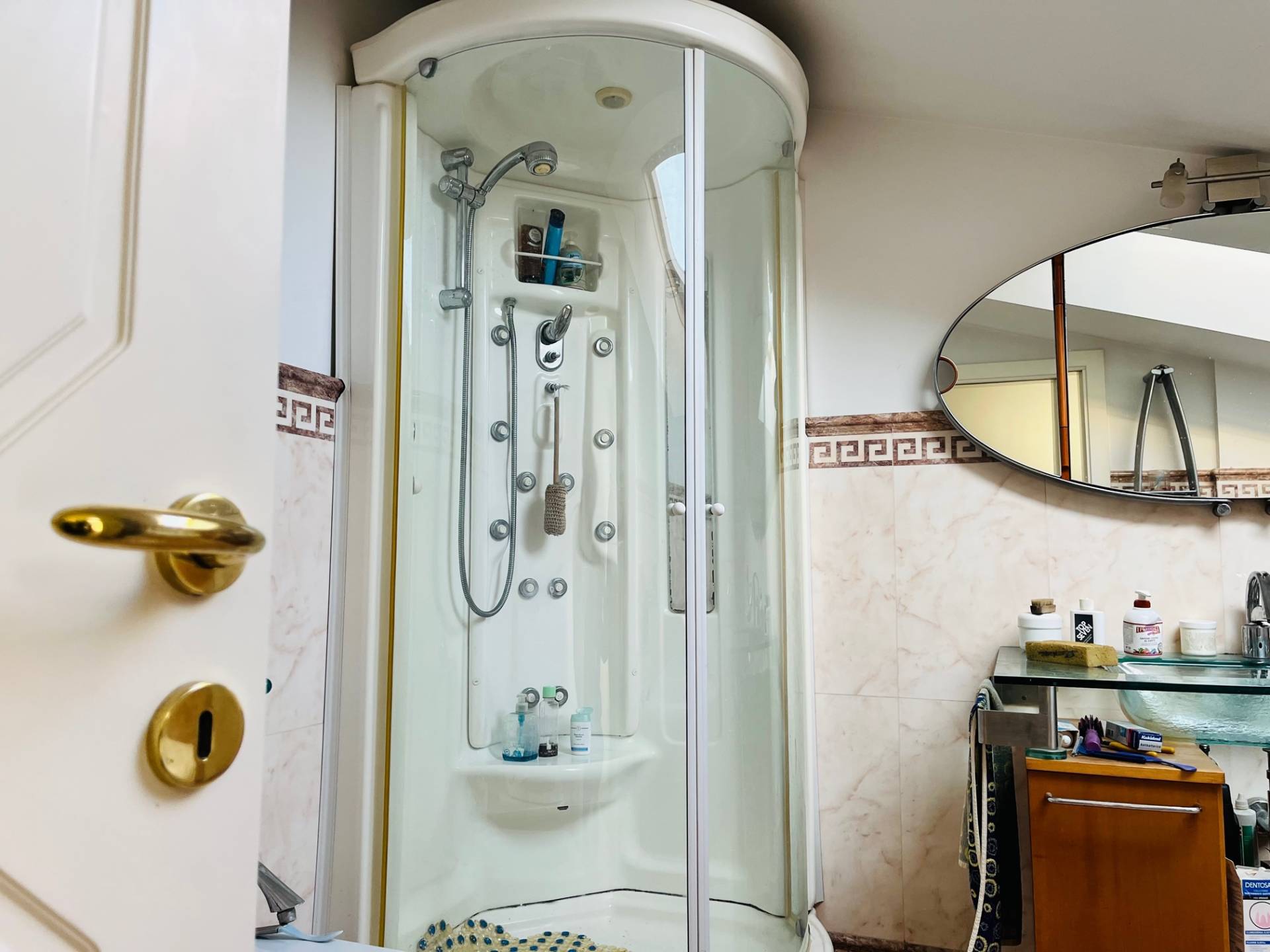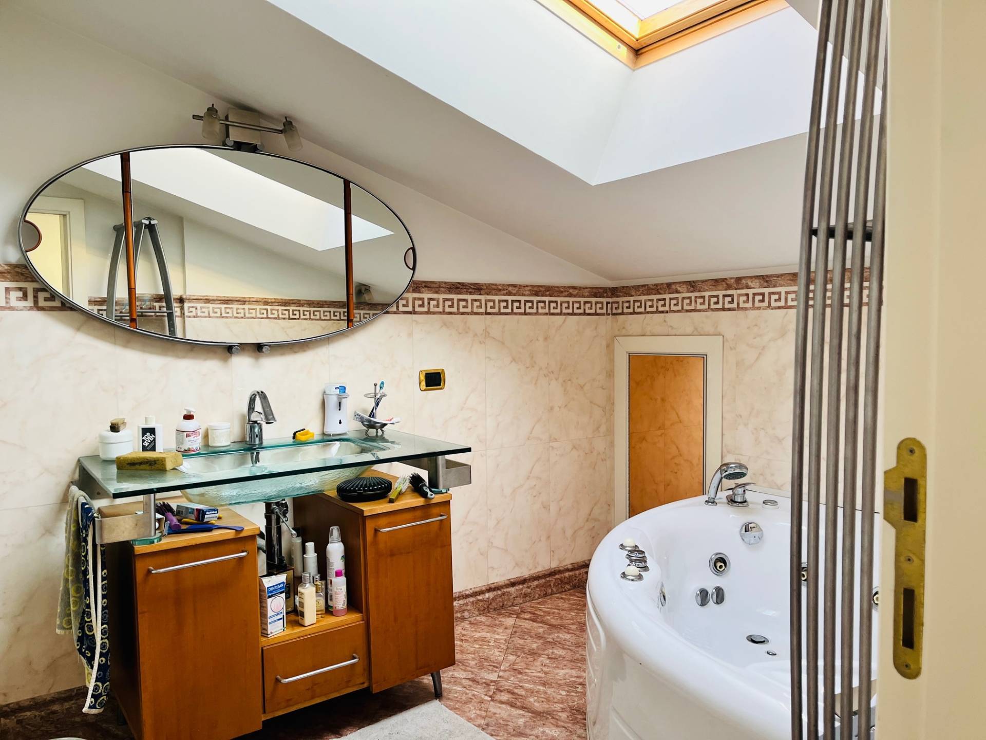 L'appartamento del SECONDO PIANO si compone di: un grandissimo soggiorno luminoso, con camino e balcone, una cucina abitabile, due bagni e tre camere, due camere con balcone (totale superficie 160mq) L'appartamento al TERZO PIANO si compone di: un soggiorno-pranzo con camino e forno per la pizza, un cucinino, un ripostiglio, due camere matrimoniali, un bagno e due terrazzi a tasca, sul tetto, molto riservati e comodi (totale superficie 95mq). Le finestre a tetto sono con serrande elettriche.