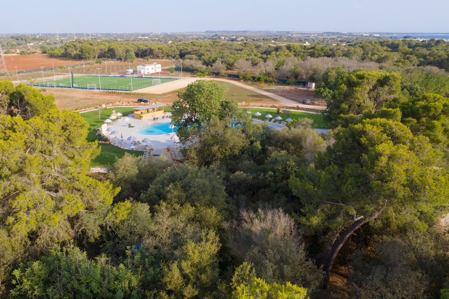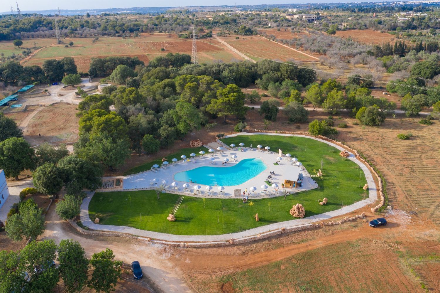 A servizio anche di ospiti esterni, vi un ristorante con capacit di oltre 80 posti tra interno ed esterno; campo da calcio, due campi da beach volley, due campi da padel, campo giochi per bambini; impreziosisce la struttura meravigliosa piscina interrata di oltre 350 mq circondata da zona relax rivestita in pietra naturale, caratteristica del luogo, e da bellissimi melograni.