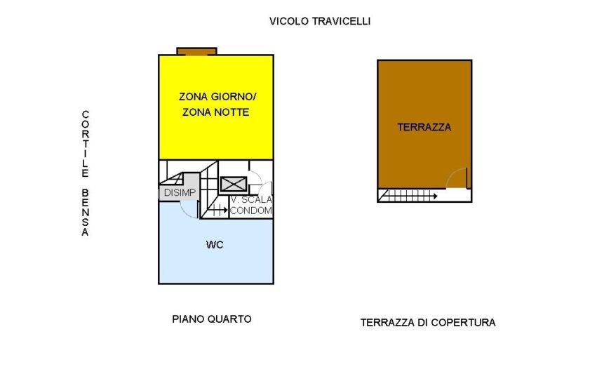 La struttura composta da un locale di deposito al piano terra nel quale verrebbe installato un ascensore e un vano a piano per un totale di 4 piani ed infine un terrazzo, ideale per creare un ambiente accogliente.
